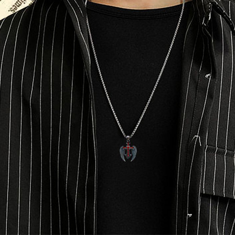 , チタン鋼, エンジェルの翼付きクロス, DIY & マイクロパヴェジルコニア, 40x50mm, 売り手 パソコン