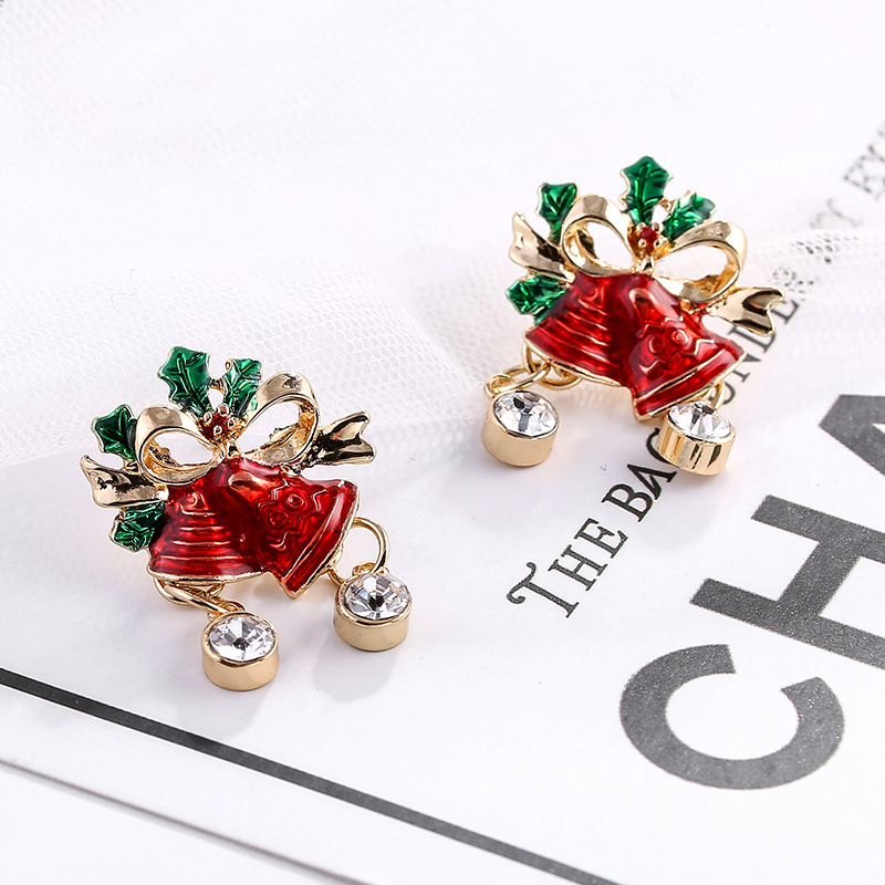 亜鉛合金 ドロップイヤリング, ベル, ゴールドメッキ, 女性用 & エナメル & ライン石のある, 15x20mm, 売り手 ペア