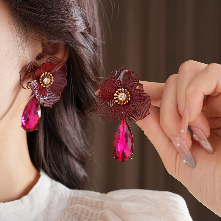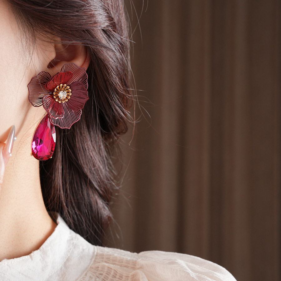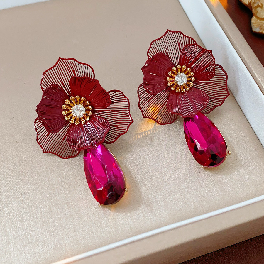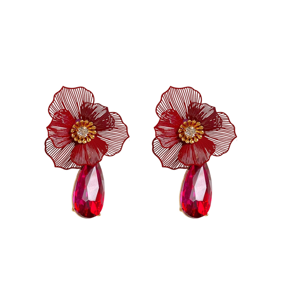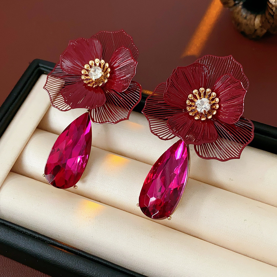 亜鉛合金 ドロップイヤリング, 花形, メッキ, 女性用 & ライン石のある & くり抜き, 40x65mm, 売り手 ペア