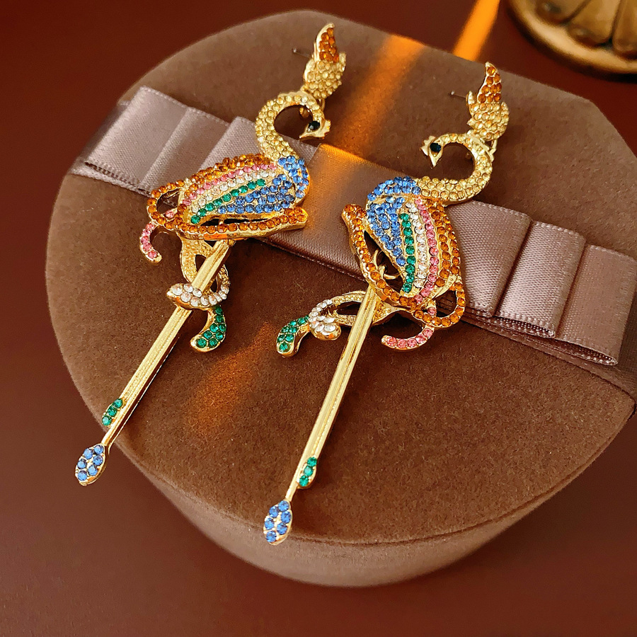 亜鉛合金 ドロップイヤリング, アニマル, ゴールドメッキ, 女性用 & ライン石のある, 25x93mm, 売り手 ペア