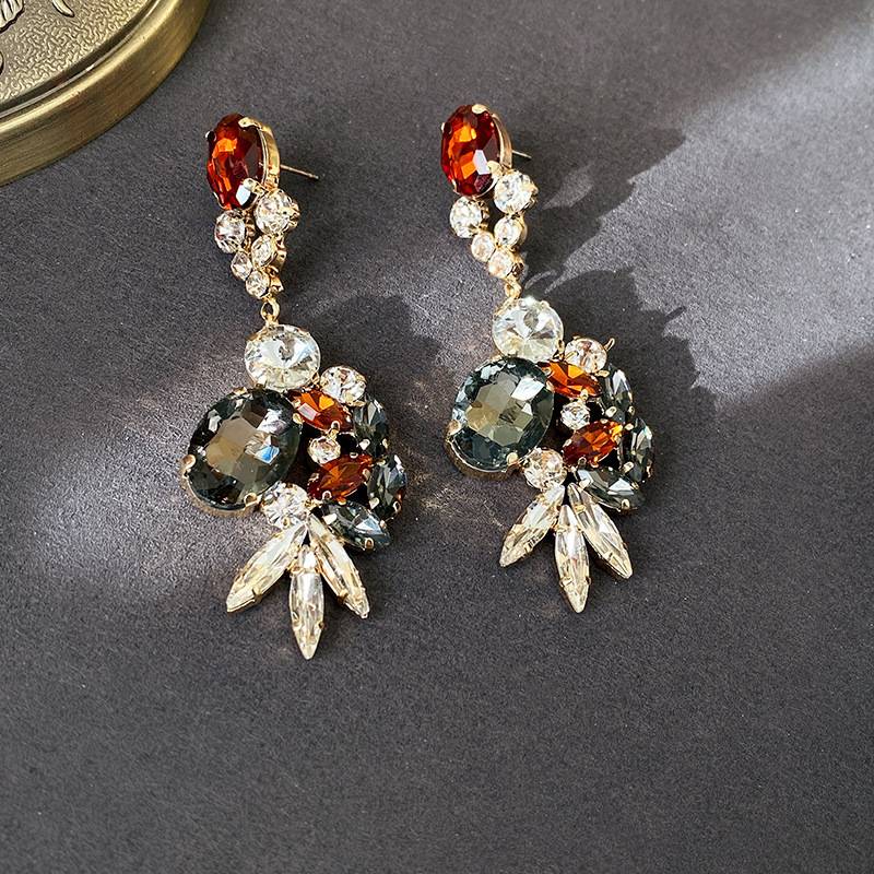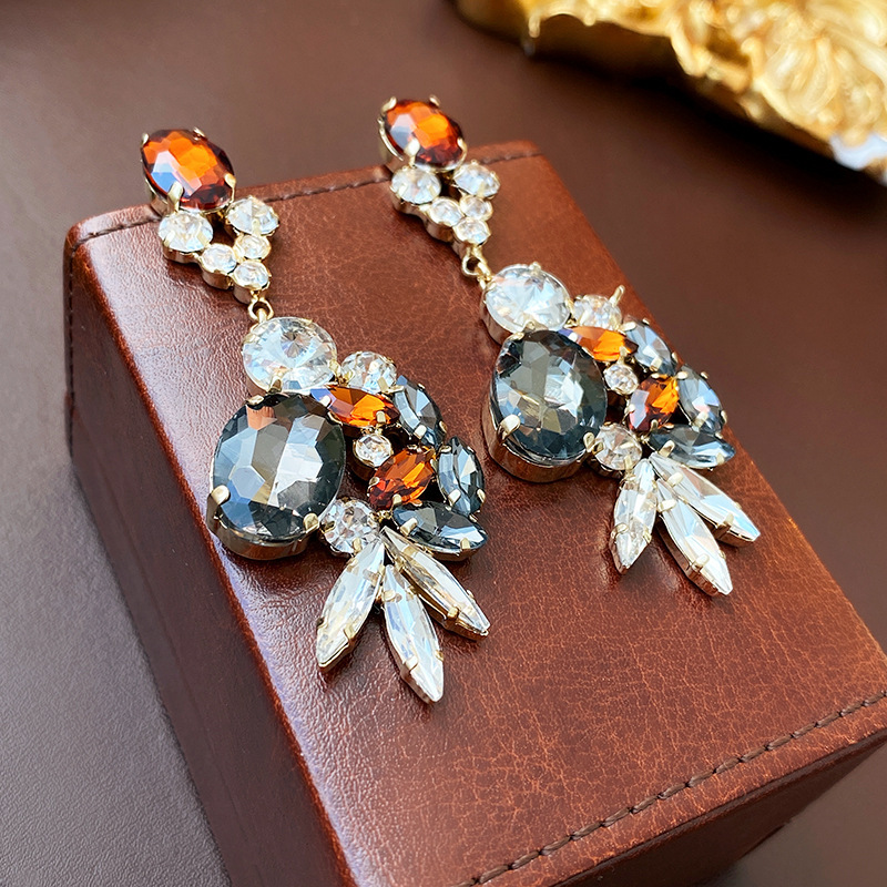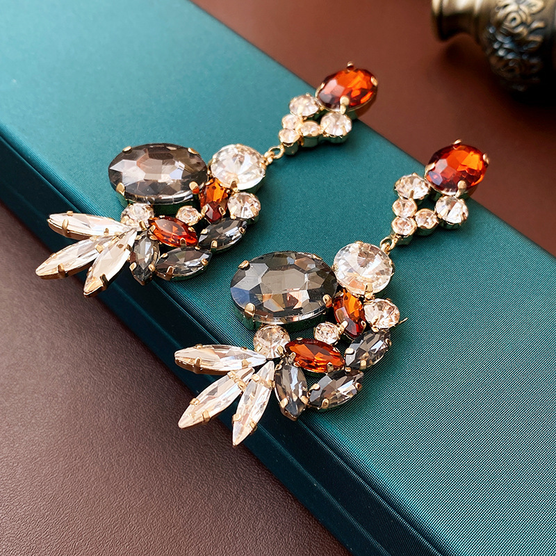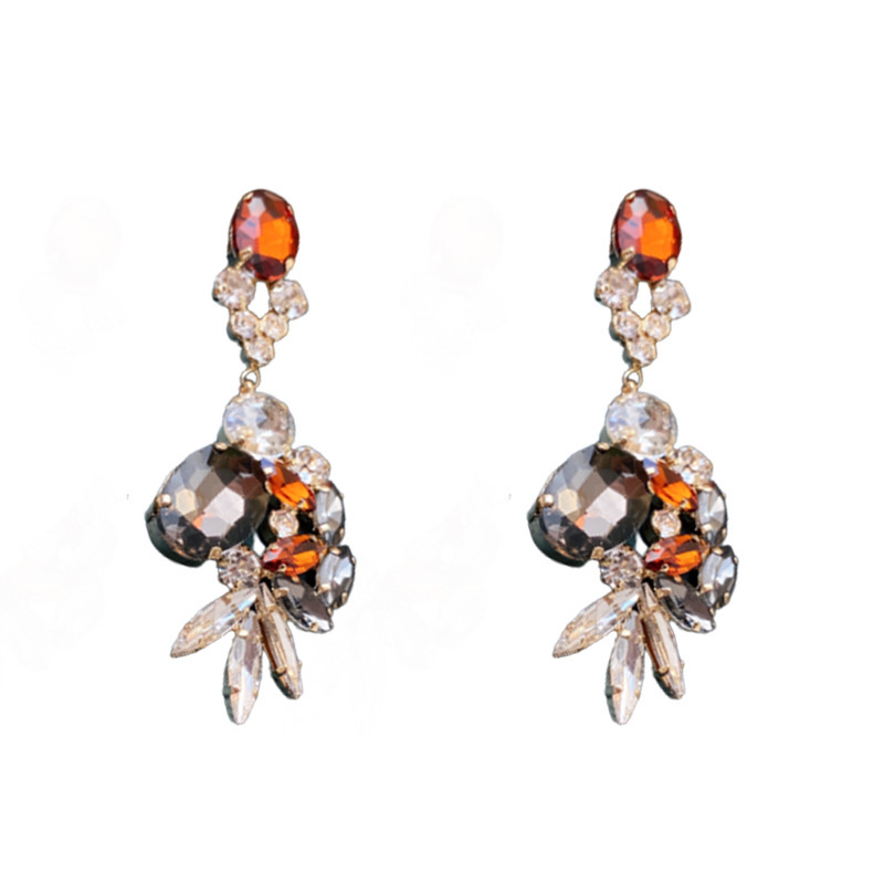 亜鉛合金ラインス トーン ドロップ イヤリング, 亜鉛合金, 花形, ゴールドメッキ, 女性用 & ライン石のある 12ペア/ロト, 売り手 ロト