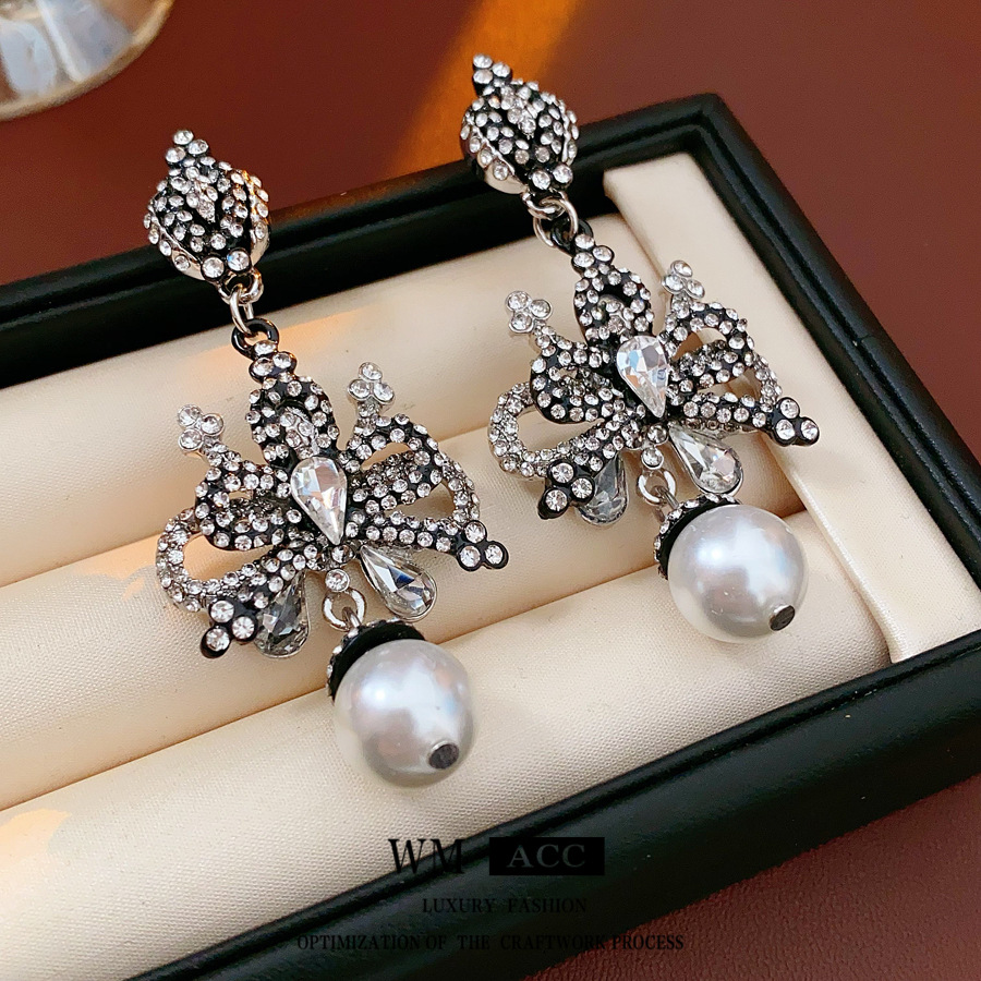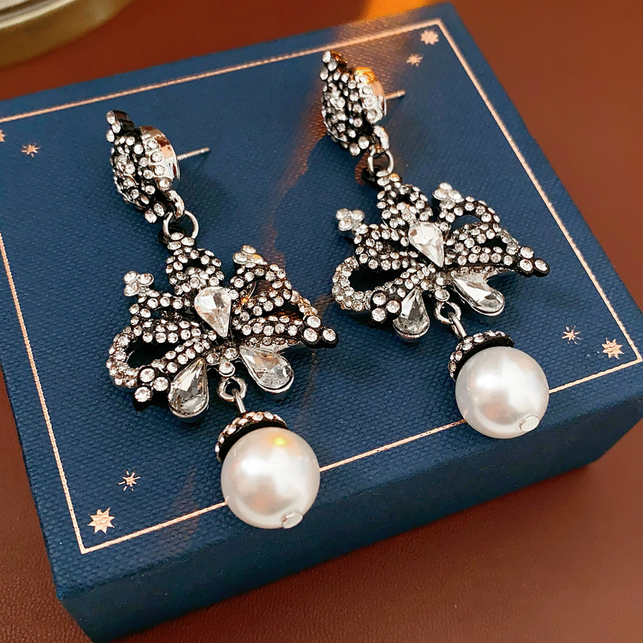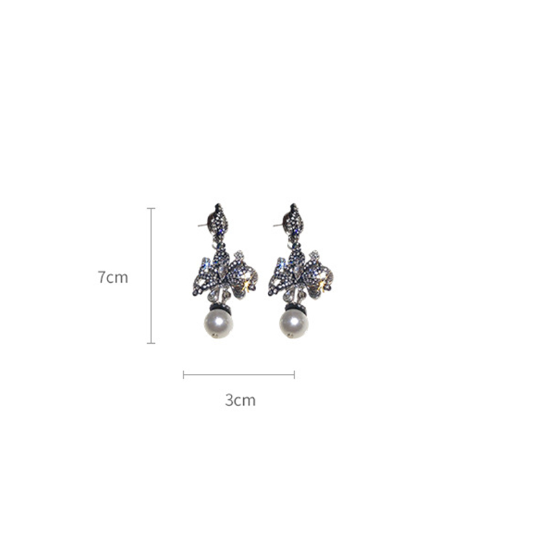 亜鉛合金 ドロップイヤリング, とともに プラスチック製パール, 蝶々結び, シルバーメッキ, 女性用 & ライン石のある, 30x70mm, 売り手 ペア