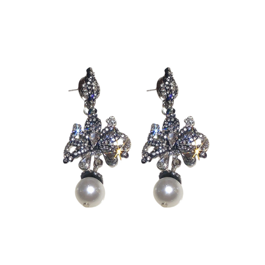 亜鉛合金ラインス トーン ドロップ イヤリング, 亜鉛合金, 花形, シルバーメッキ, 女性用 & ライン石のある 12ペア/ロト, 売り手 ロト