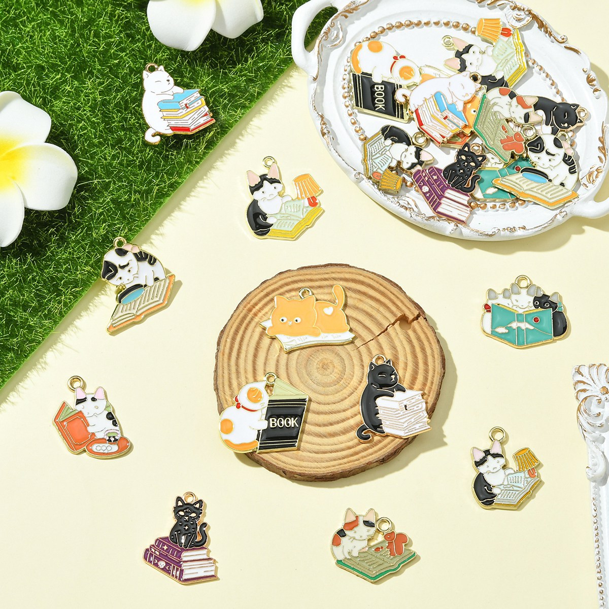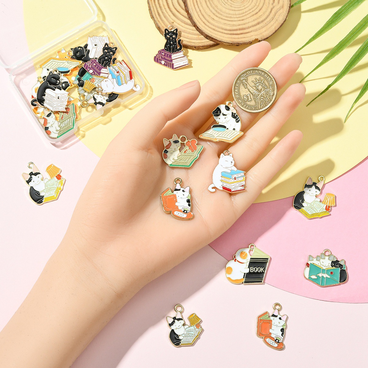 亜鉛合金のエナメル ペンダント, 亜鉛合金, ネコ, ゴールドメッキ, 混在パターン & DIY, 22パソコン/バッグ, 売り手 バッグ