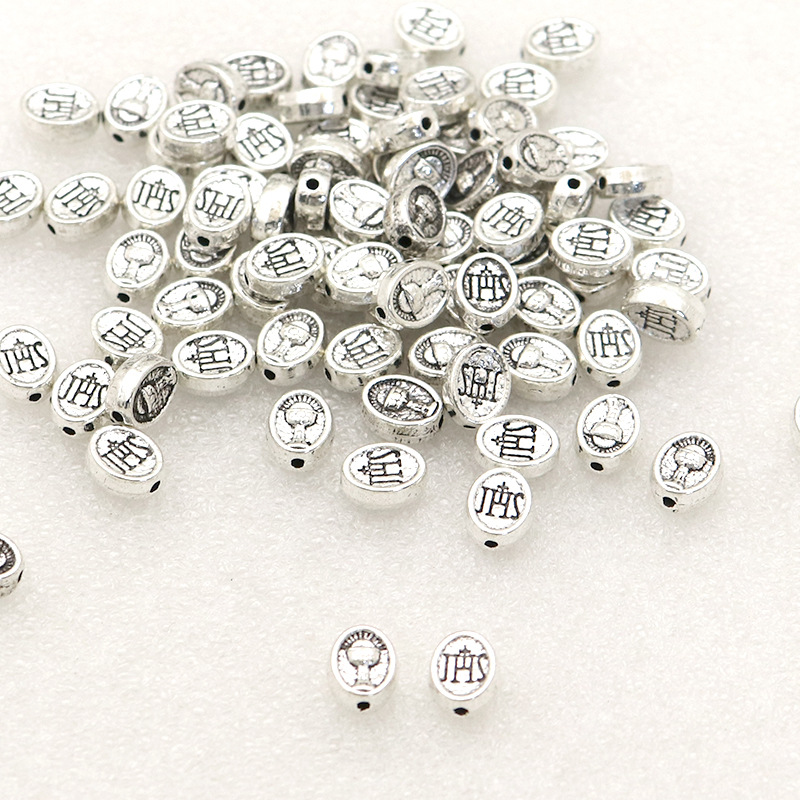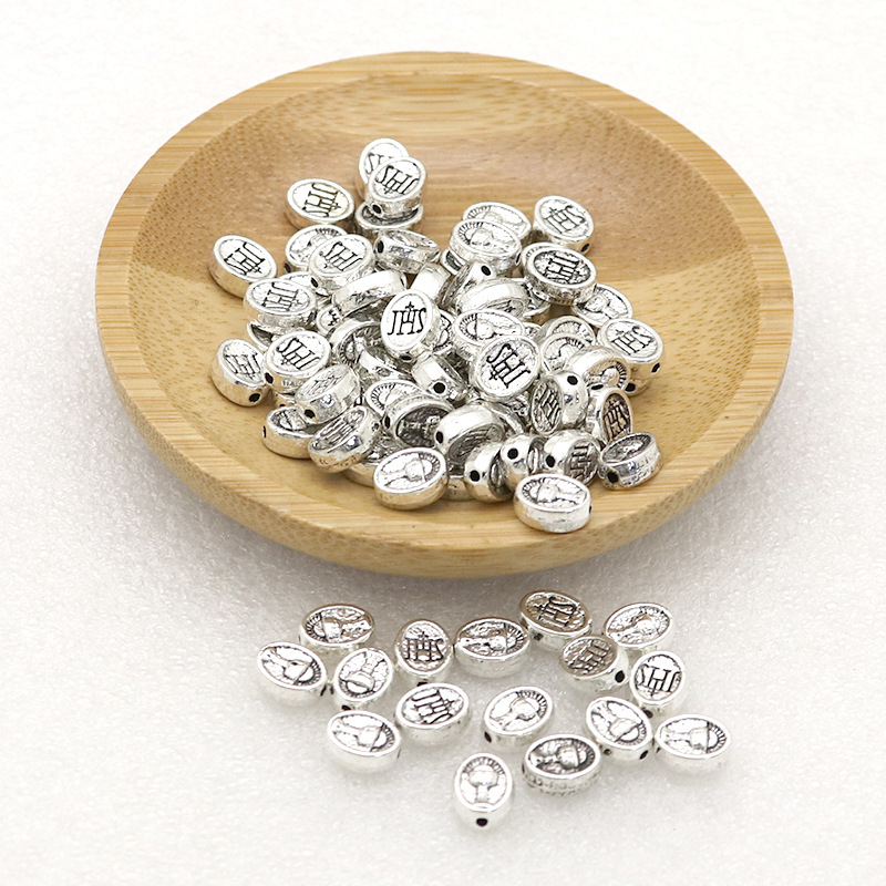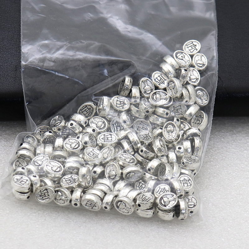 亜鉛合金フラット・ビーズ, 亜鉛合金, 楕円, メッキ加工, ラウンドスポット模様入り, 無色 穴:約 1mm, 約 1500パソコン/バッグ, 売り手 バッグ