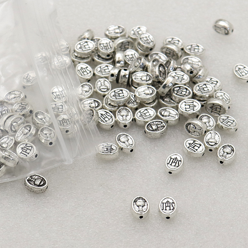 亜鉛合金フラット・ビーズ, 亜鉛合金, シルバーメッキ, DIY, 8x6x3mm, 穴:約 1mm, 約 100パソコン/バッグ, 売り手 バッグ