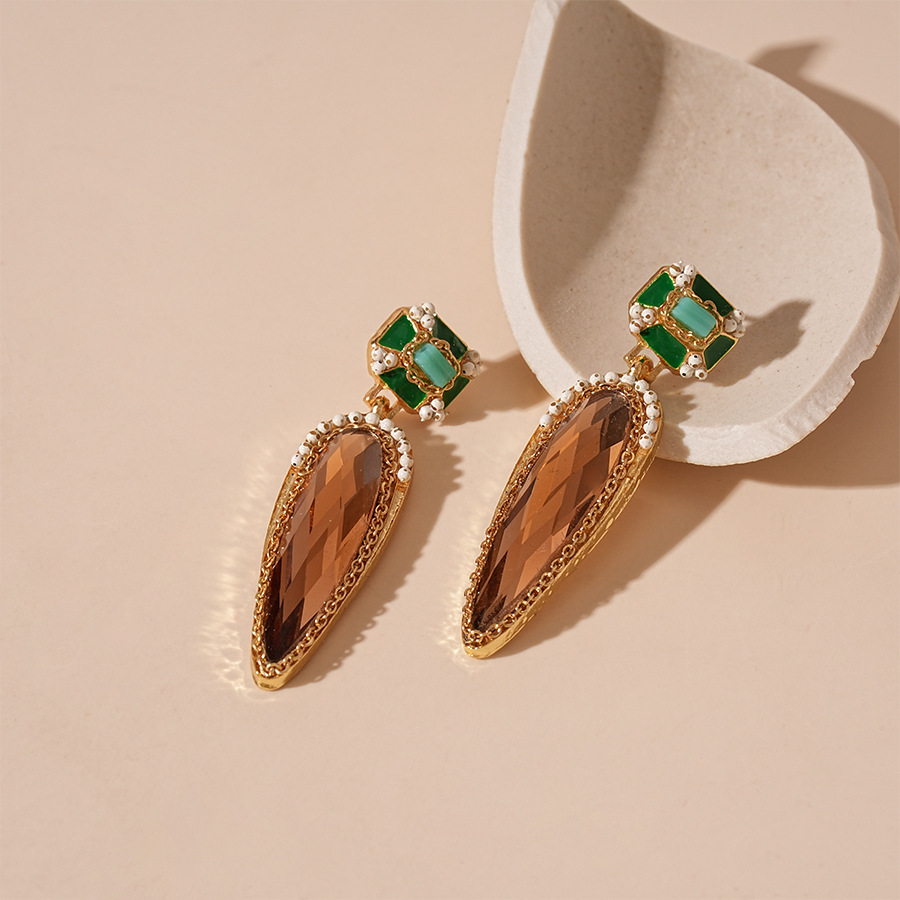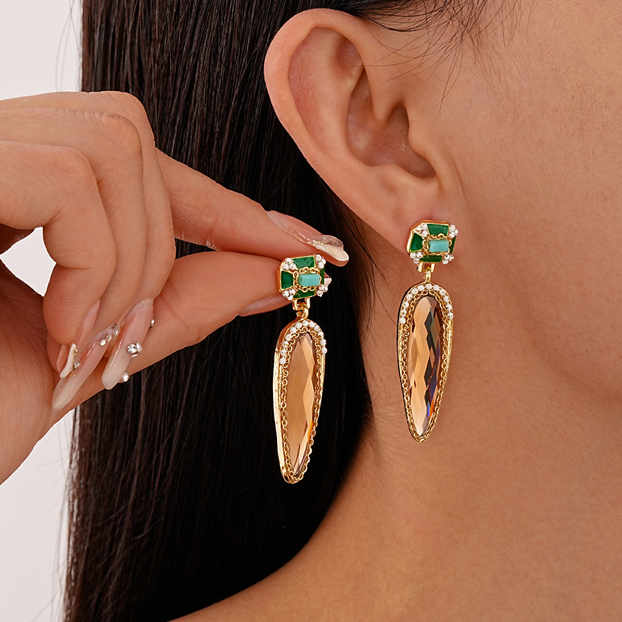 亜鉛合金ラインス トーン ドロップ イヤリング, 亜鉛合金, 花形, ゴールドメッキ, 女性用 & ライン石のある 12ペア/ロト, 売り手 ロト
