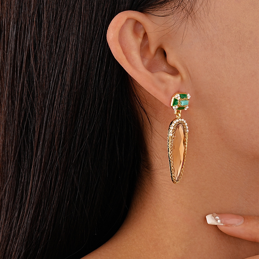 亜鉛合金ラインス トーン ドロップ イヤリング, 亜鉛合金, 鉄 フック, スケルトン, ライン石のある, ニッケル、鉛、カドミウムフリー 売り手 ペア