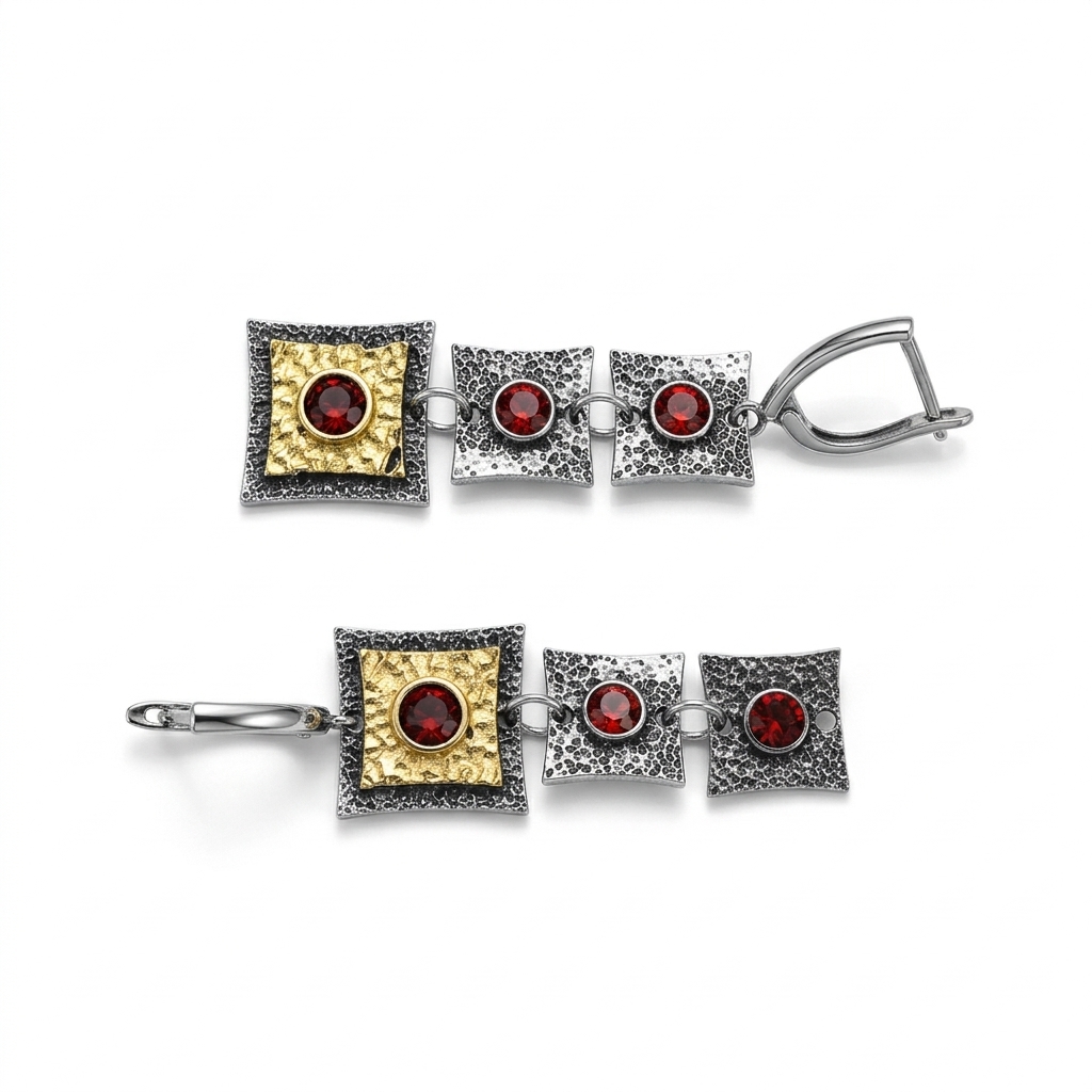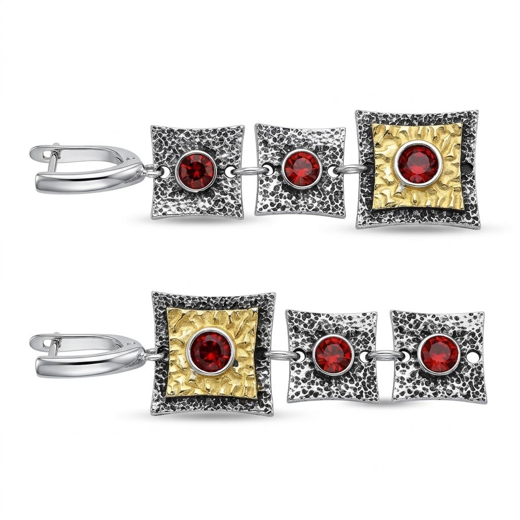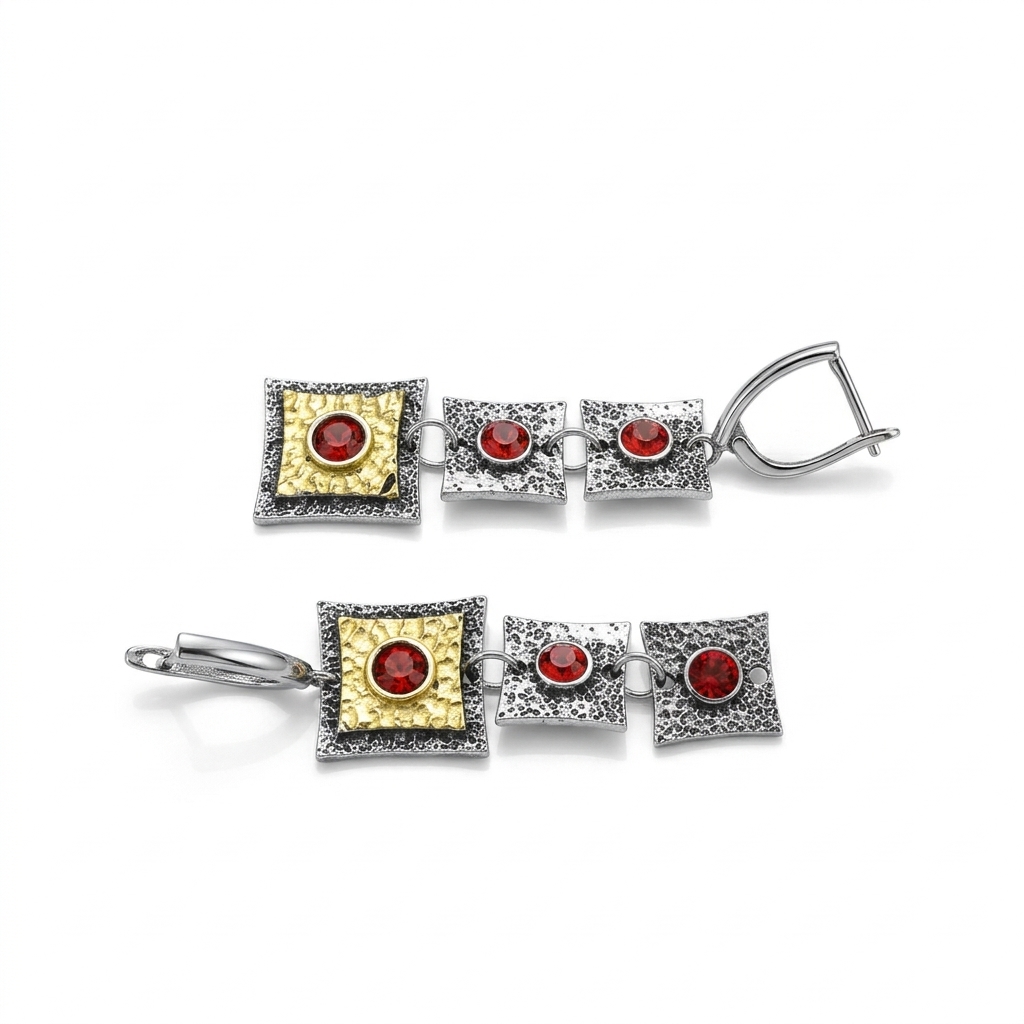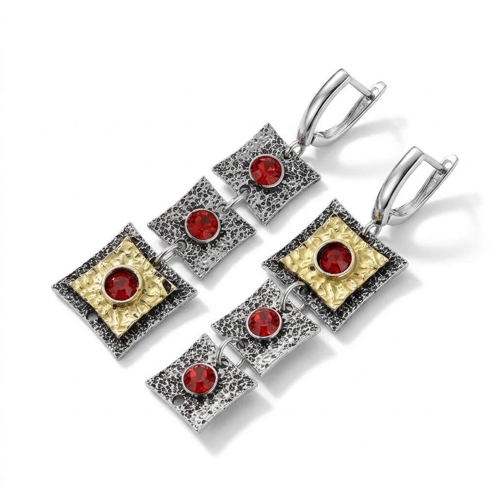 亜鉛合金ラインス トーン ドロップ イヤリング, 亜鉛合金, スクエアー, メッキ, ヴィンテージ & ファッションジュエリー & 女性用 & ライン石のある, レッド, 56mm, 売り手 ペア