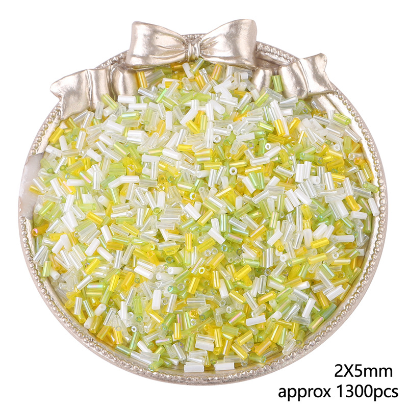 2 Cut Glass Seed Beads, Hexagon Bugles yellow
