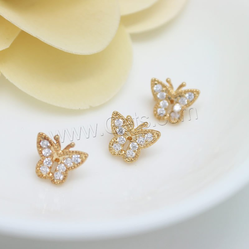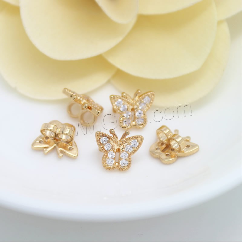 Brass, Butterfly, 24K gold plated, micro pave cubic zirconia, 9x10mm, Hole:Approx 2mm, Sold By PC