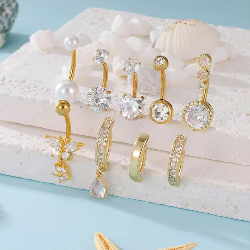 Stainless Steel Belly Ring, with Cubic Zirconia, for woman