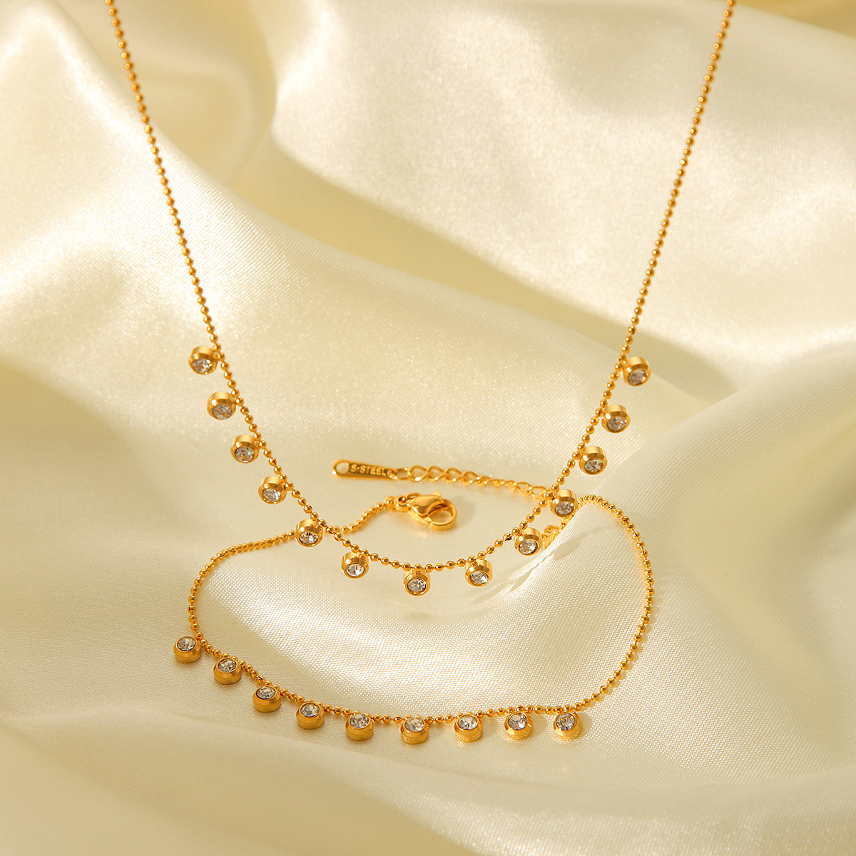 304 Stainless Steel Bracelet and Necklace, gold color plated, different styles for choice & for woman & with rhinestone, Sold By PC