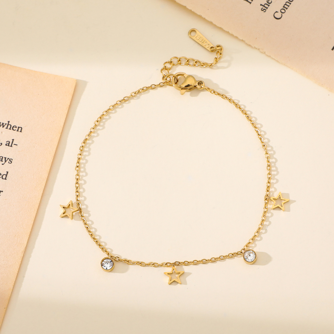 Stainless Steel Charm Bracelet, Star, oval chain, original color Approx 8 Inch