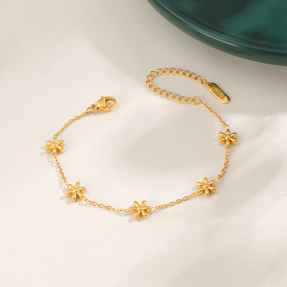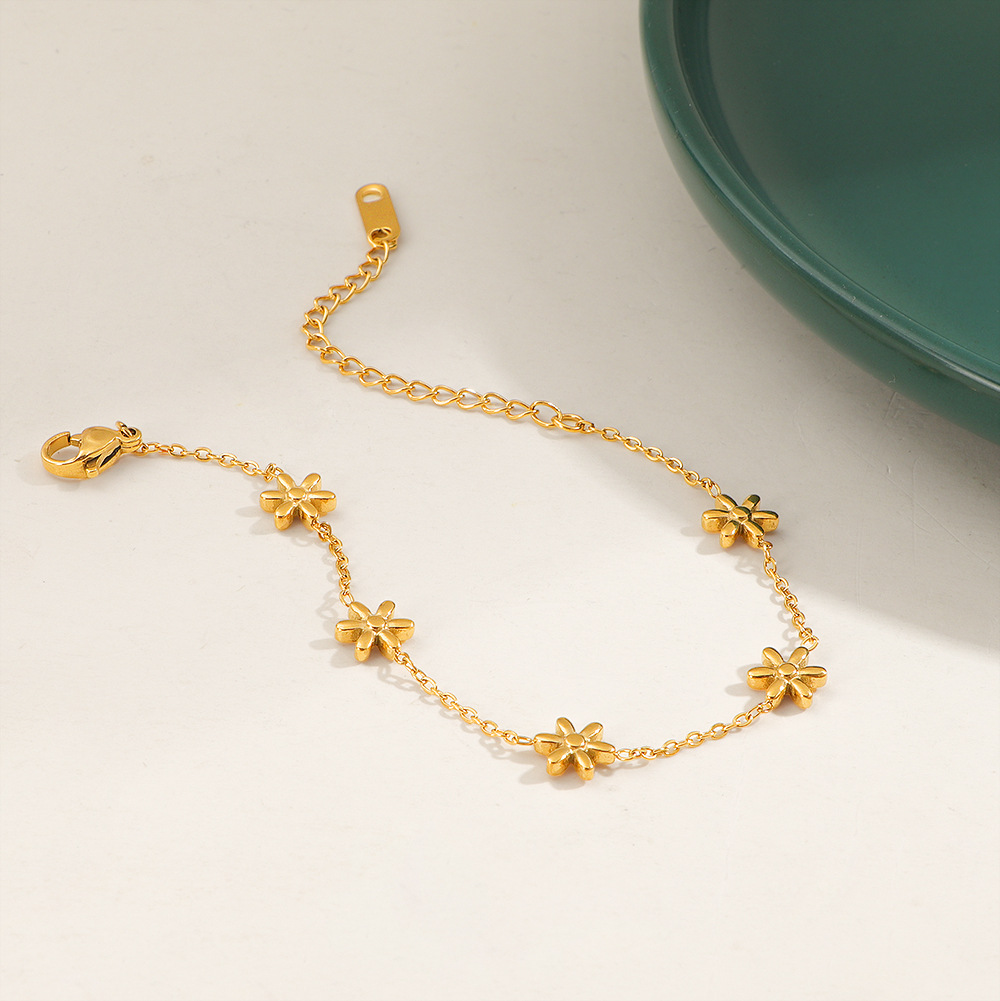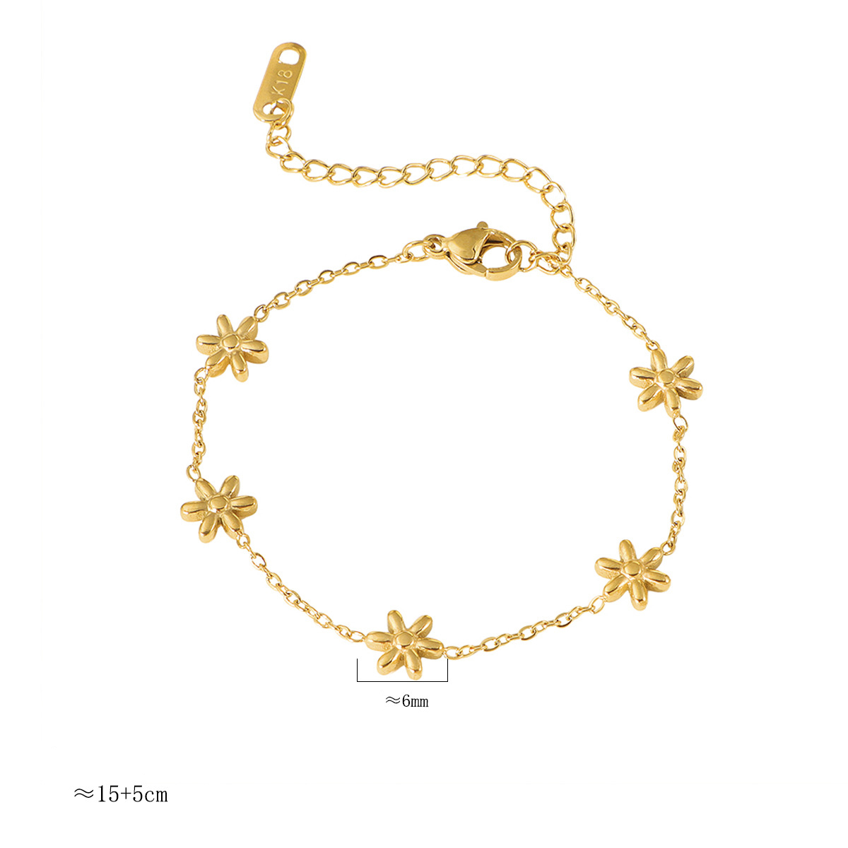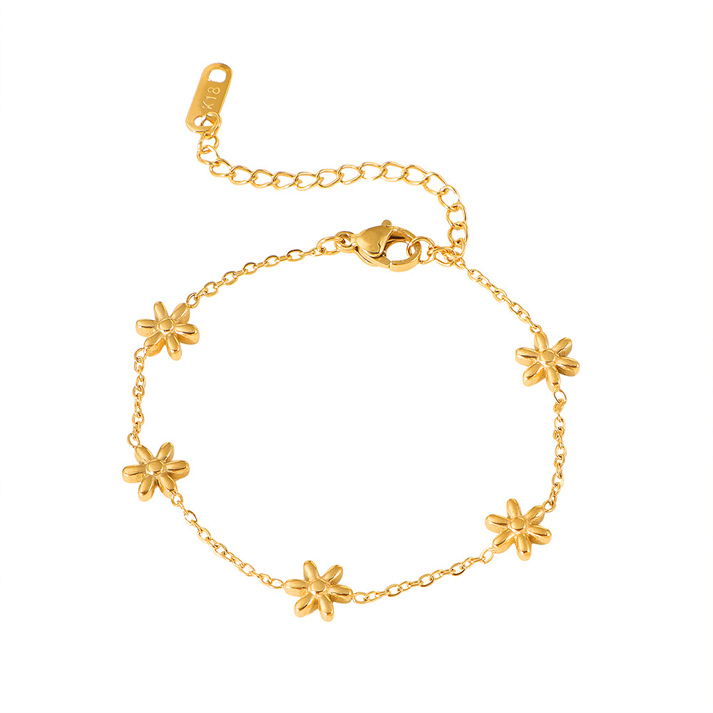 304 Stainless Steel Bracelet, with 5cm extender chain, Flower, gold color plated, fashion jewelry & for woman, Length:Approx 15 cm, Sold By PC
