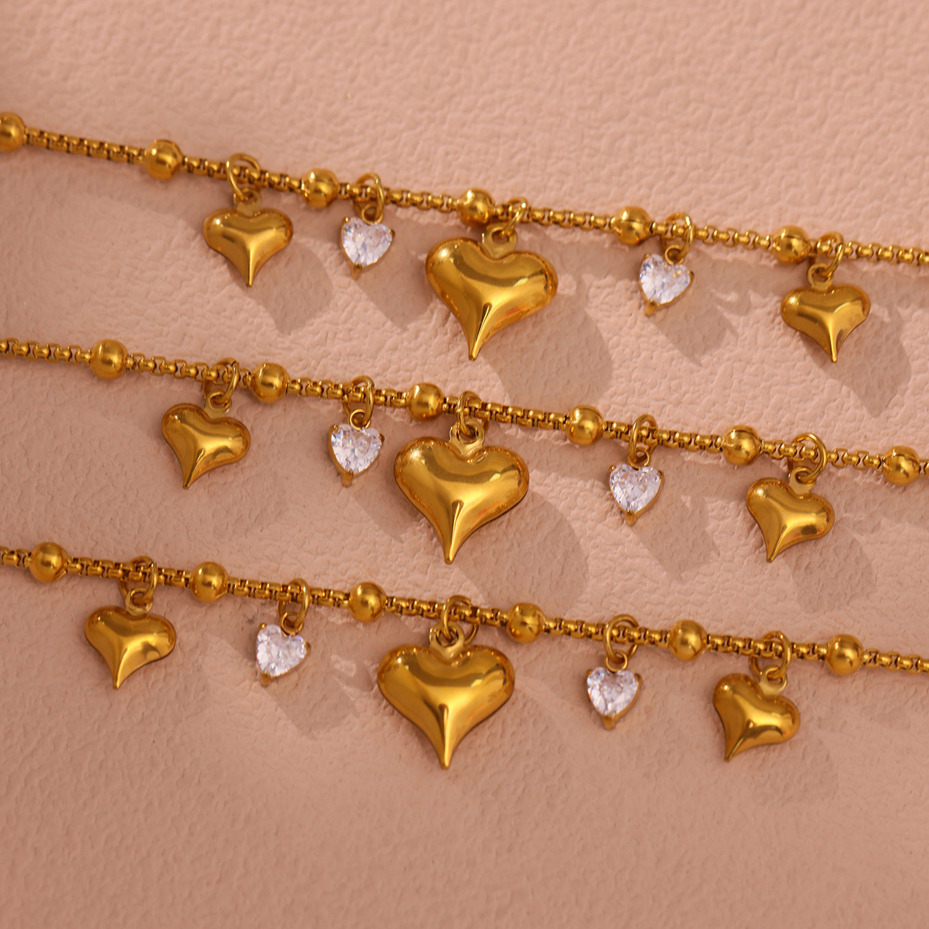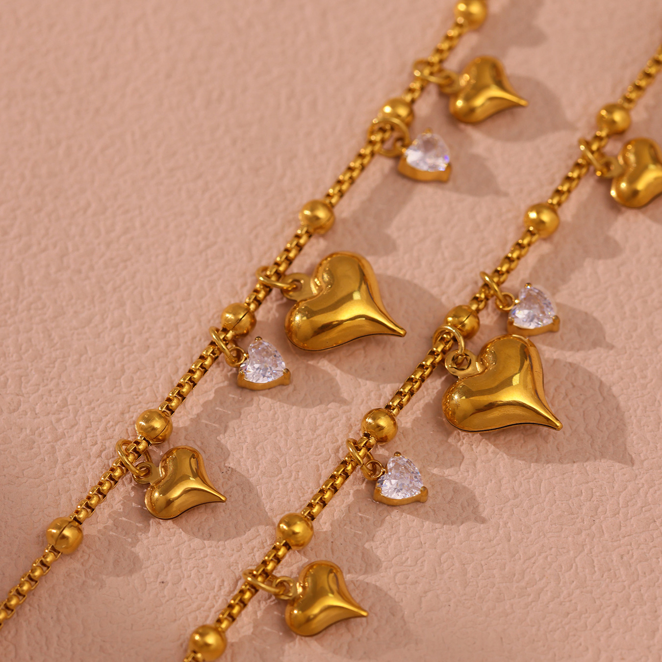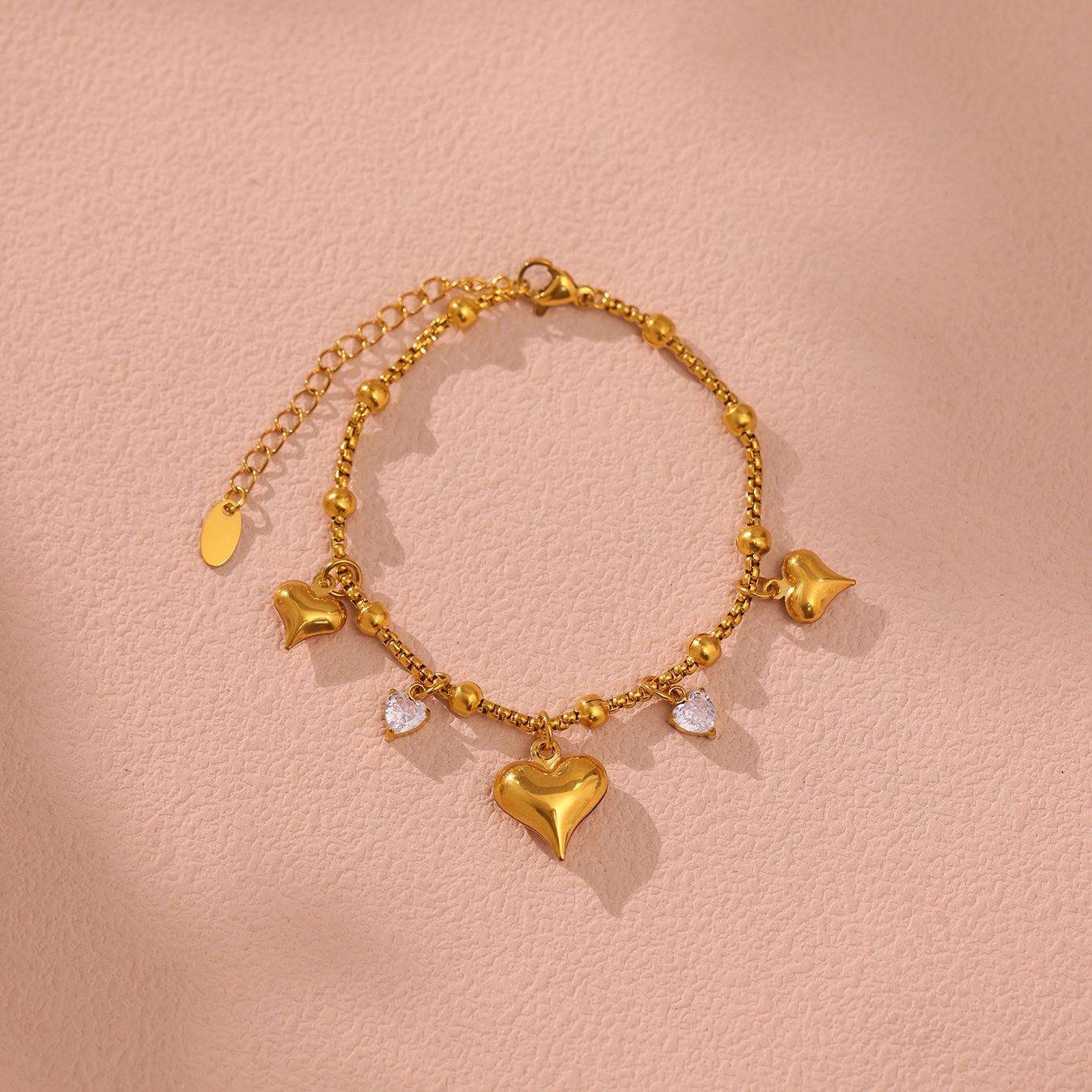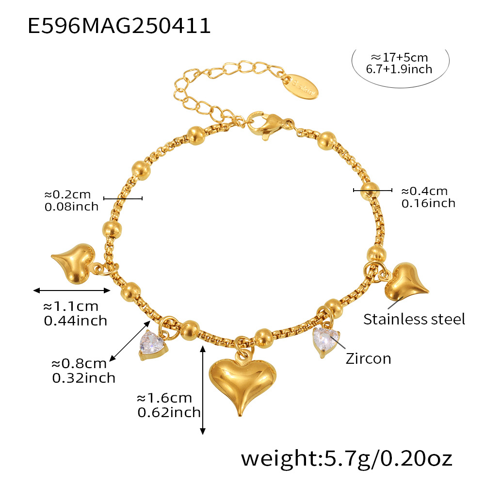 Stainless Steel Charm Bracelet, Heart, oval chain, original color  4mm Approx 8 Inch