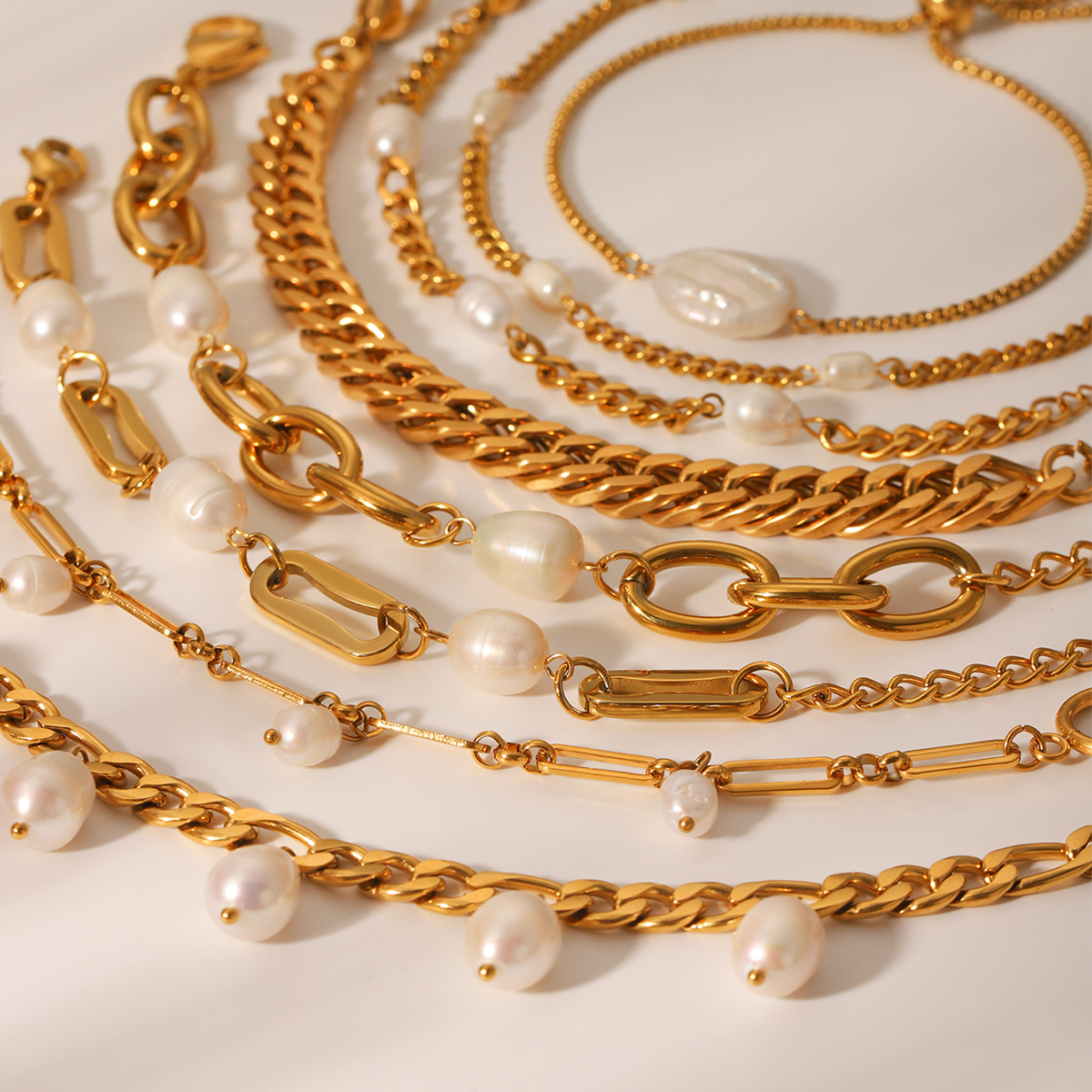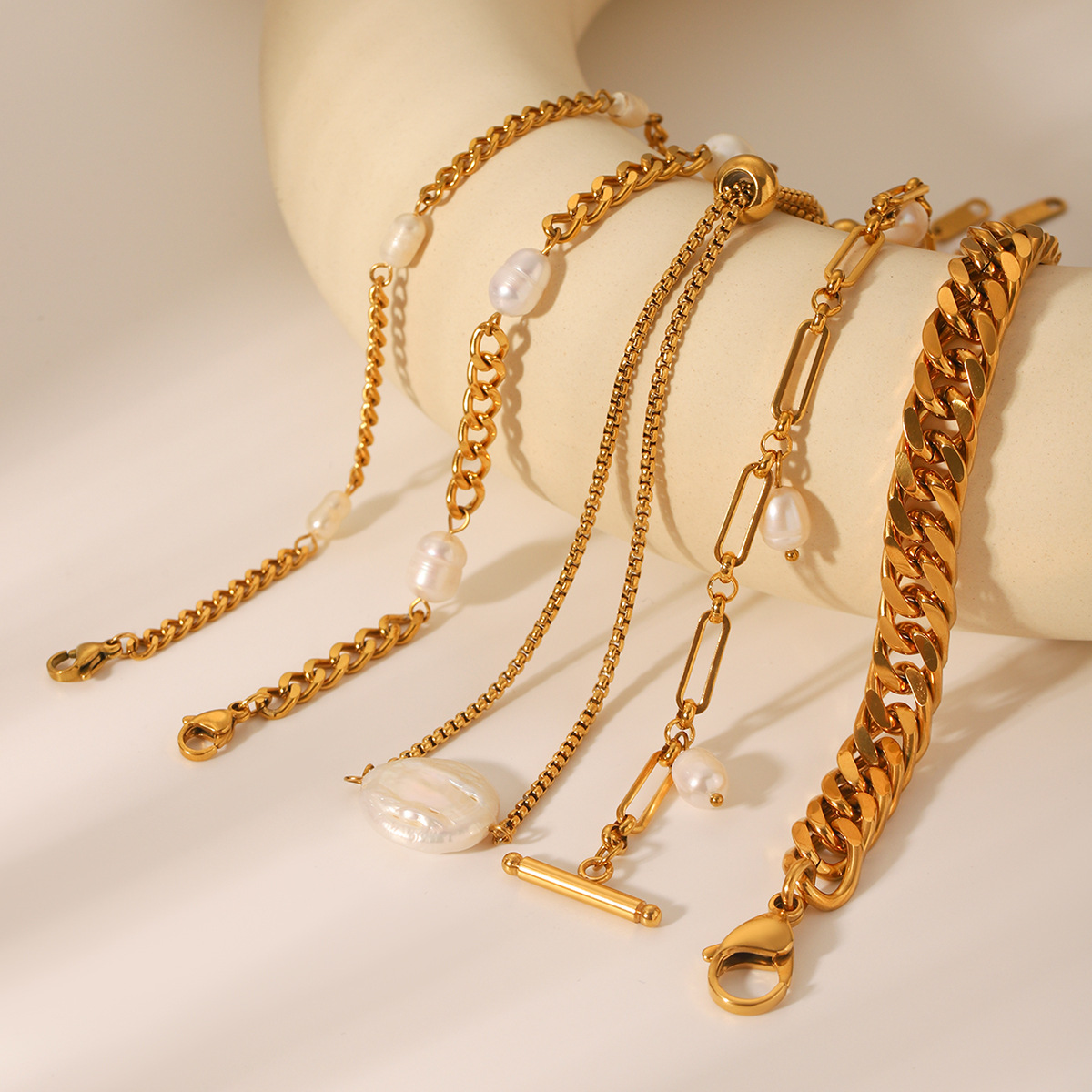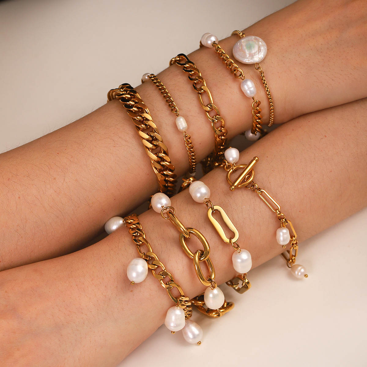 304 Stainless Steel Bracelet, with Freshwater Pearl, gold color plated, fashion jewelry & different styles for choice & for woman, Sold By PC