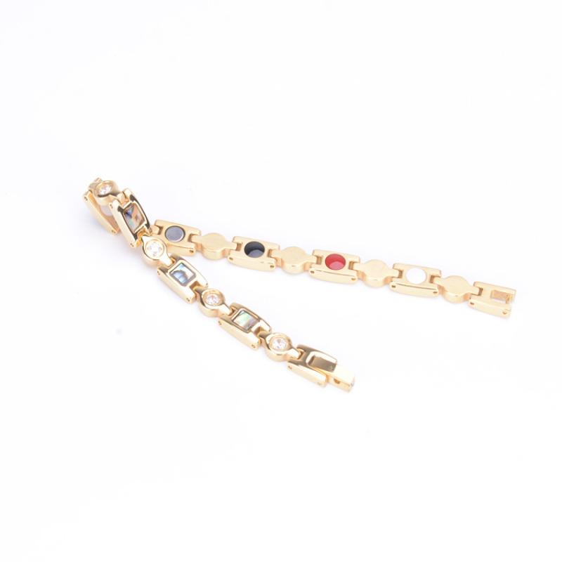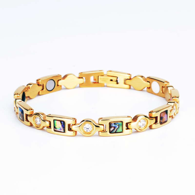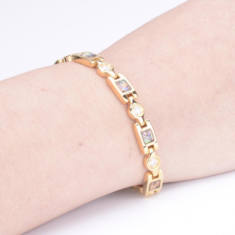 304 Stainless Steel Bracelet, with Shell, plated, for woman & with rhinestone, more colors for choice, Length:Approx 7.6 Inch, Sold By PC