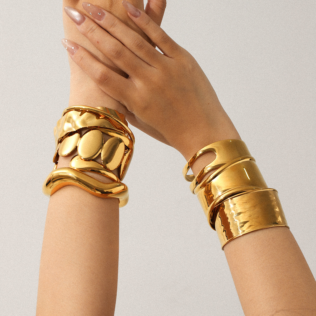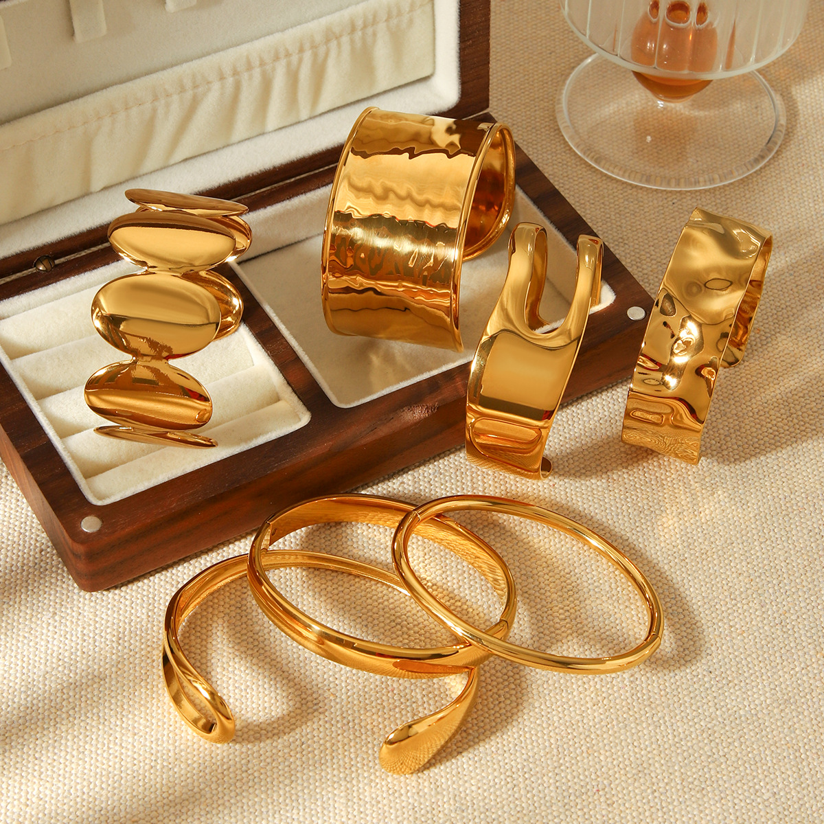 304 Stainless Steel Cuff Bangle, gold color plated, different styles for choice & for woman, Sold By PC