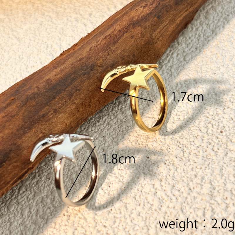 304 Stainless Steel Cuff Finger Ring, Moon and Star, fashion jewelry & for woman, more colors for choice, Sold By PC