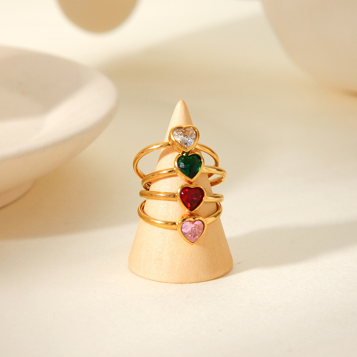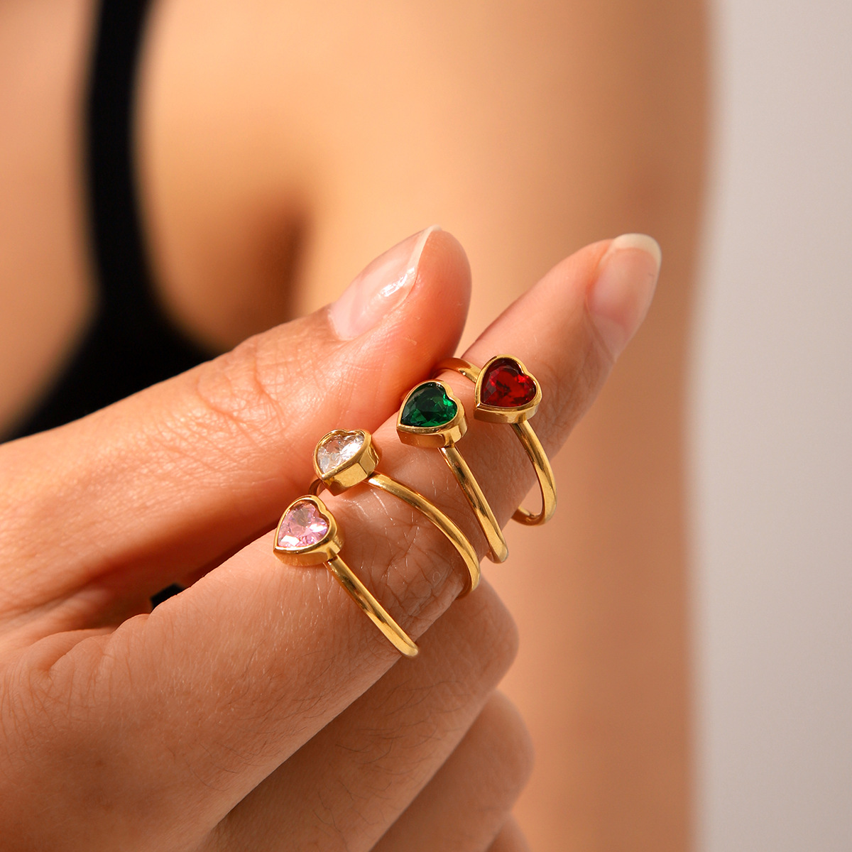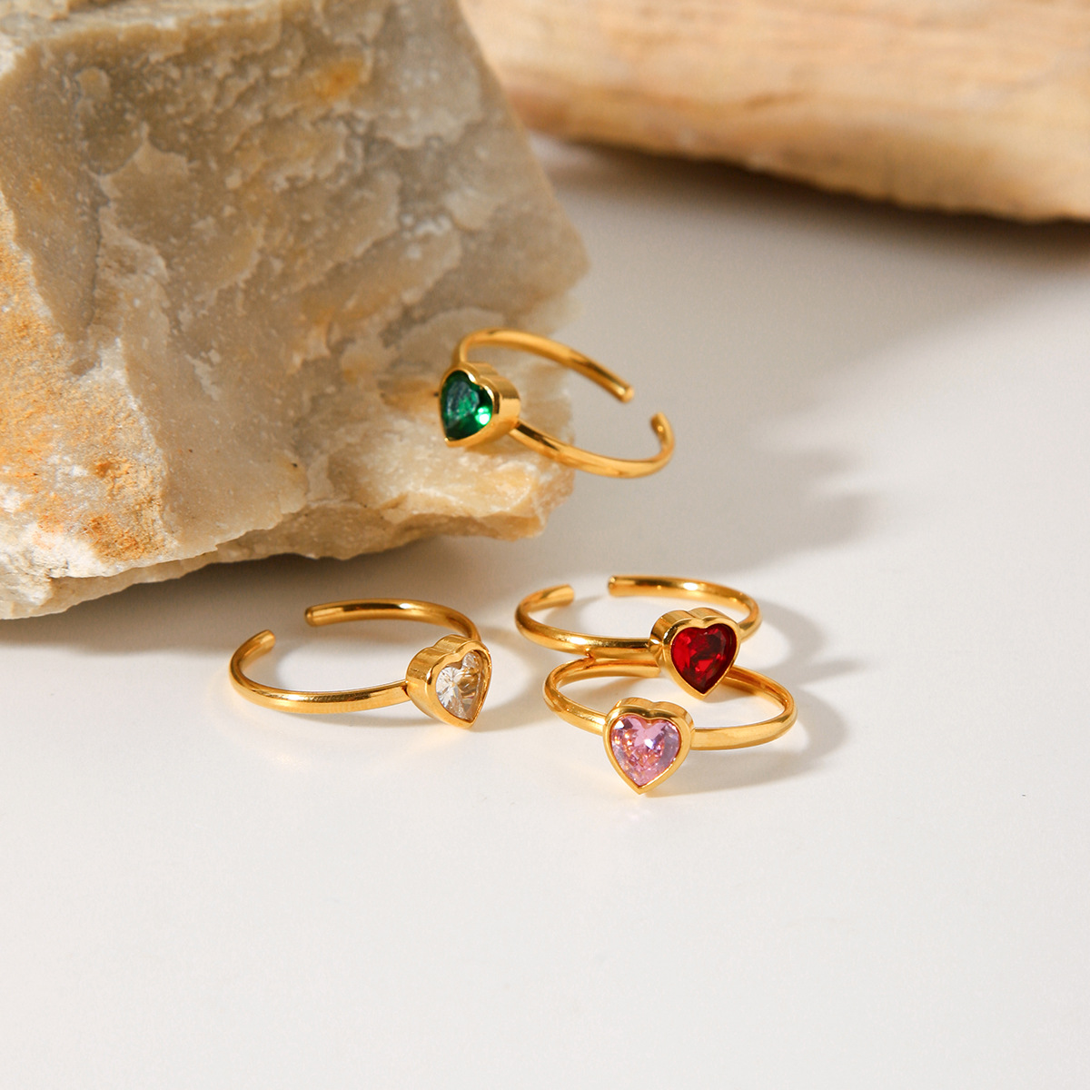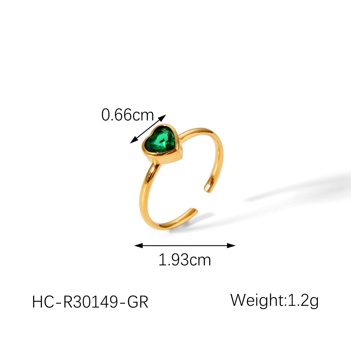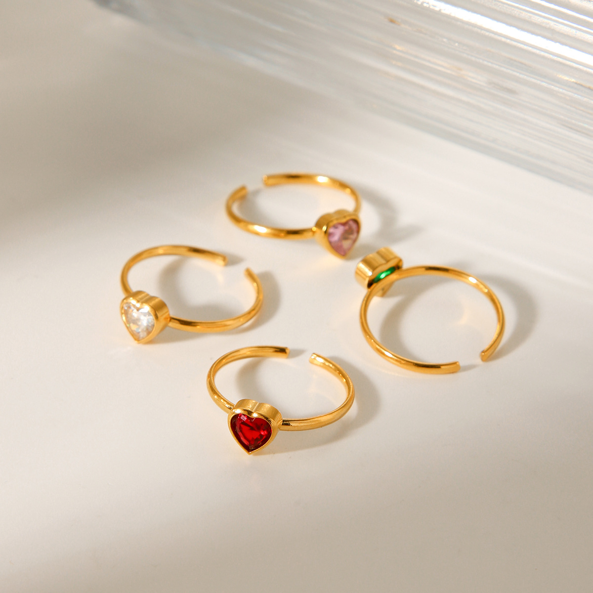 304 Stainless Steel Cuff Finger Ring, Heart, gold color plated, for woman & with rhinestone, more colors for choice, Sold By PC