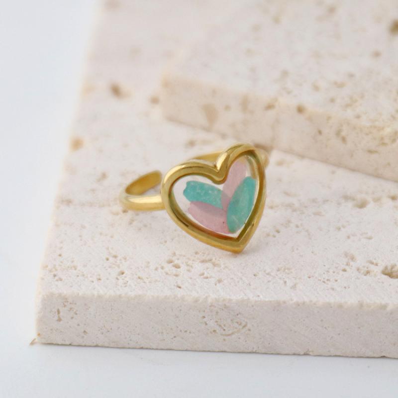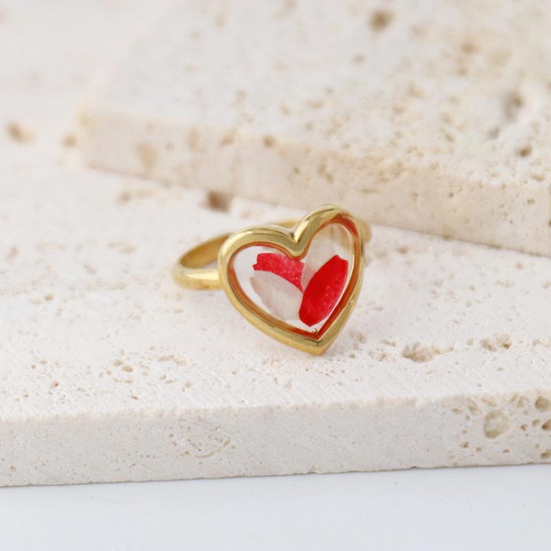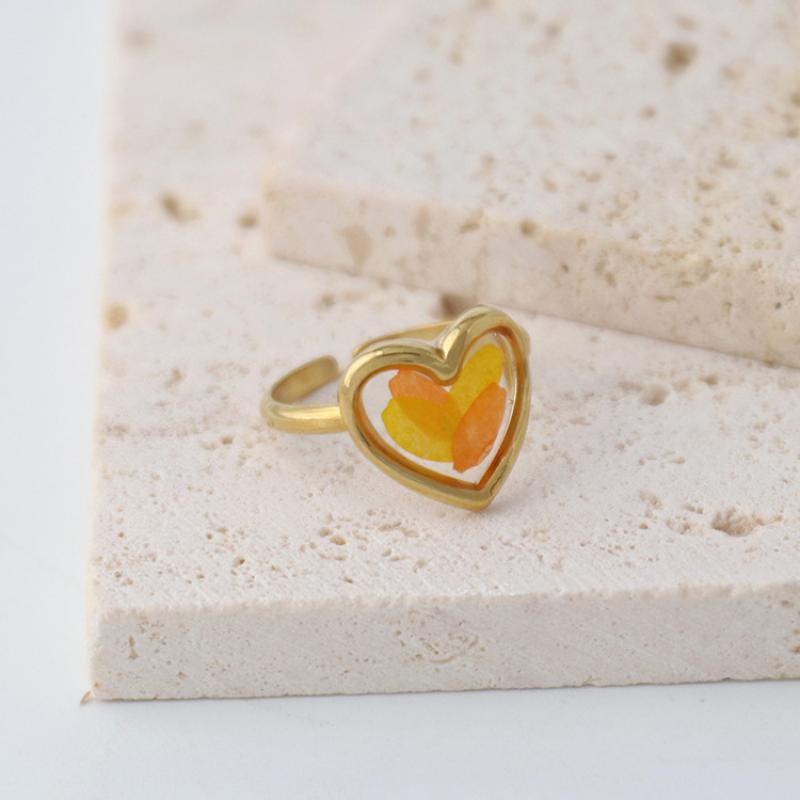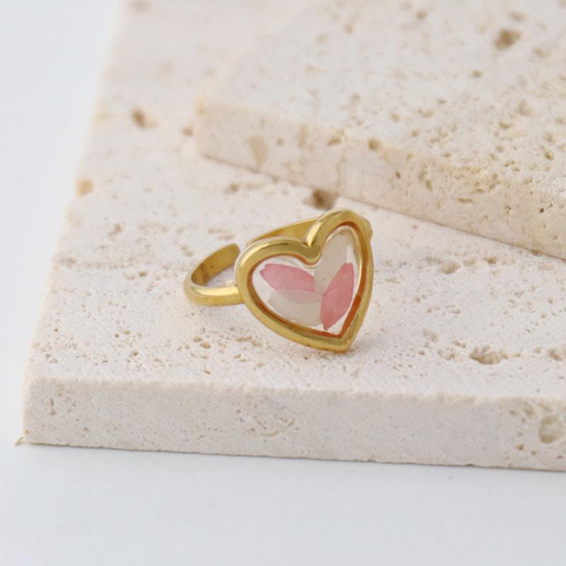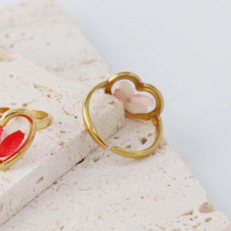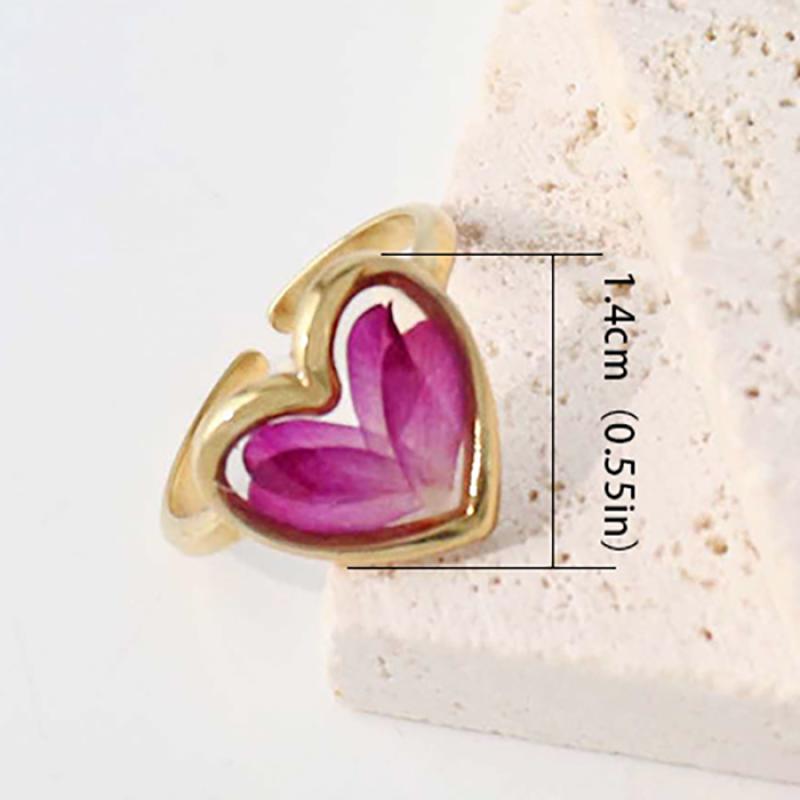 304 Stainless Steel Cuff Finger Ring, with Dried Flower & Resin, gold color plated, fashion jewelry & handmade & for woman, more colors for choice, 6PCs/Bag, Sold By Bag