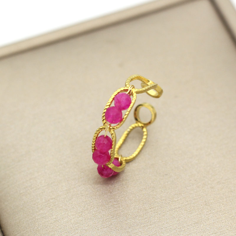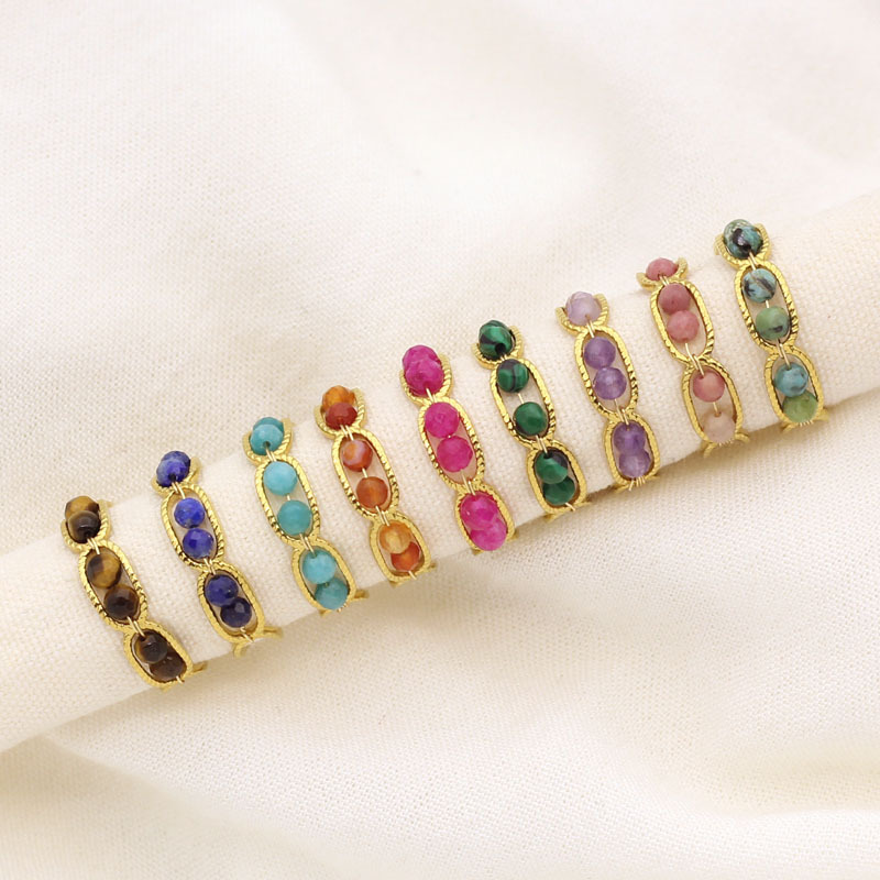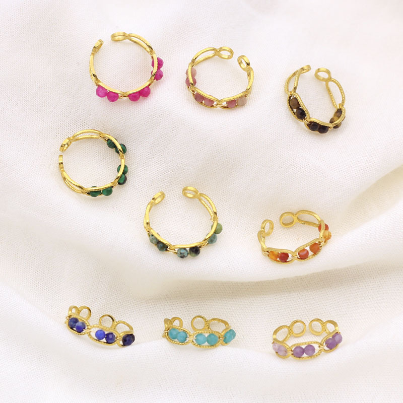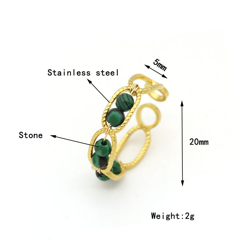 304 Stainless Steel Cuff Finger Ring, with Natural Stone, gold color plated, fashion jewelry, more colors for choice, Sold By PC