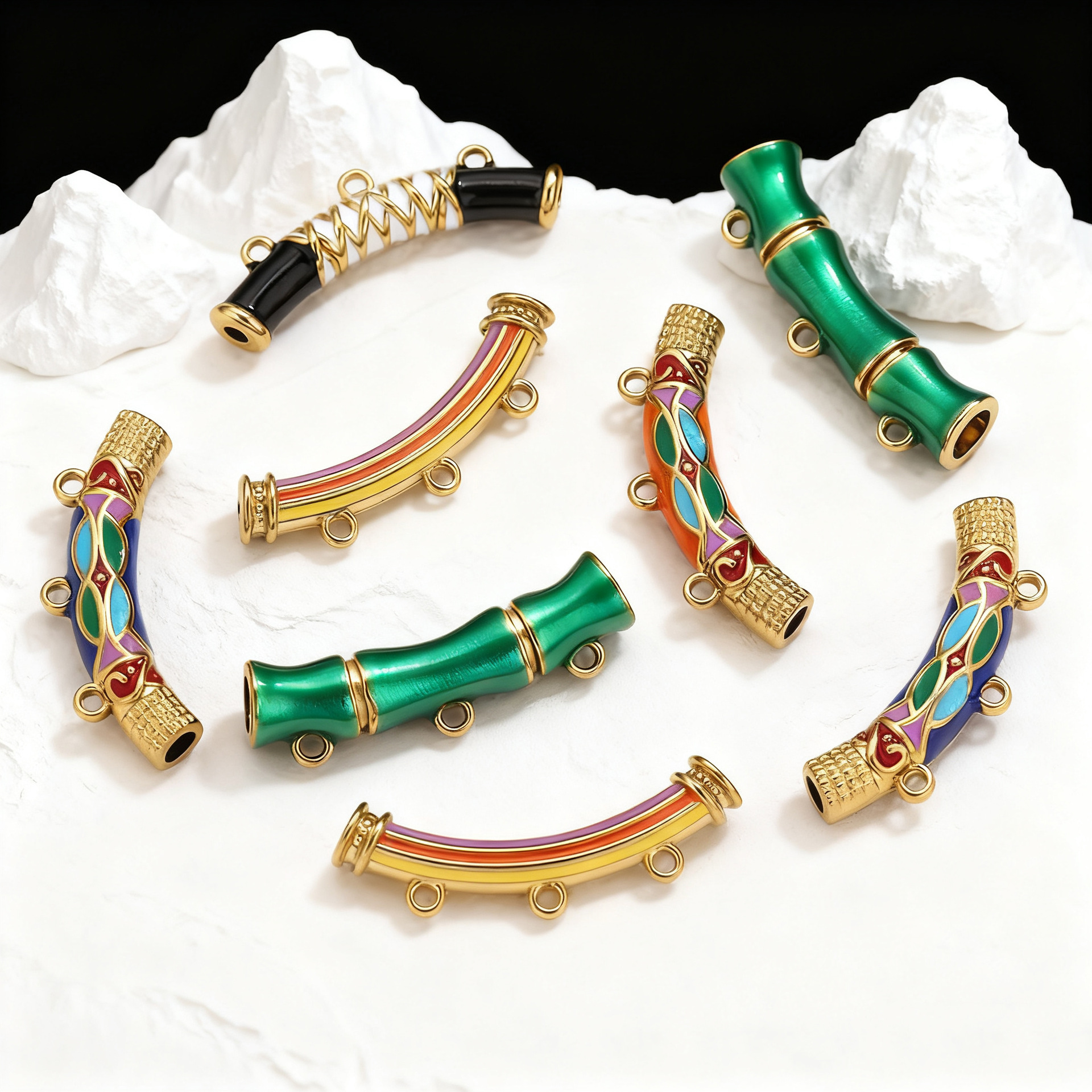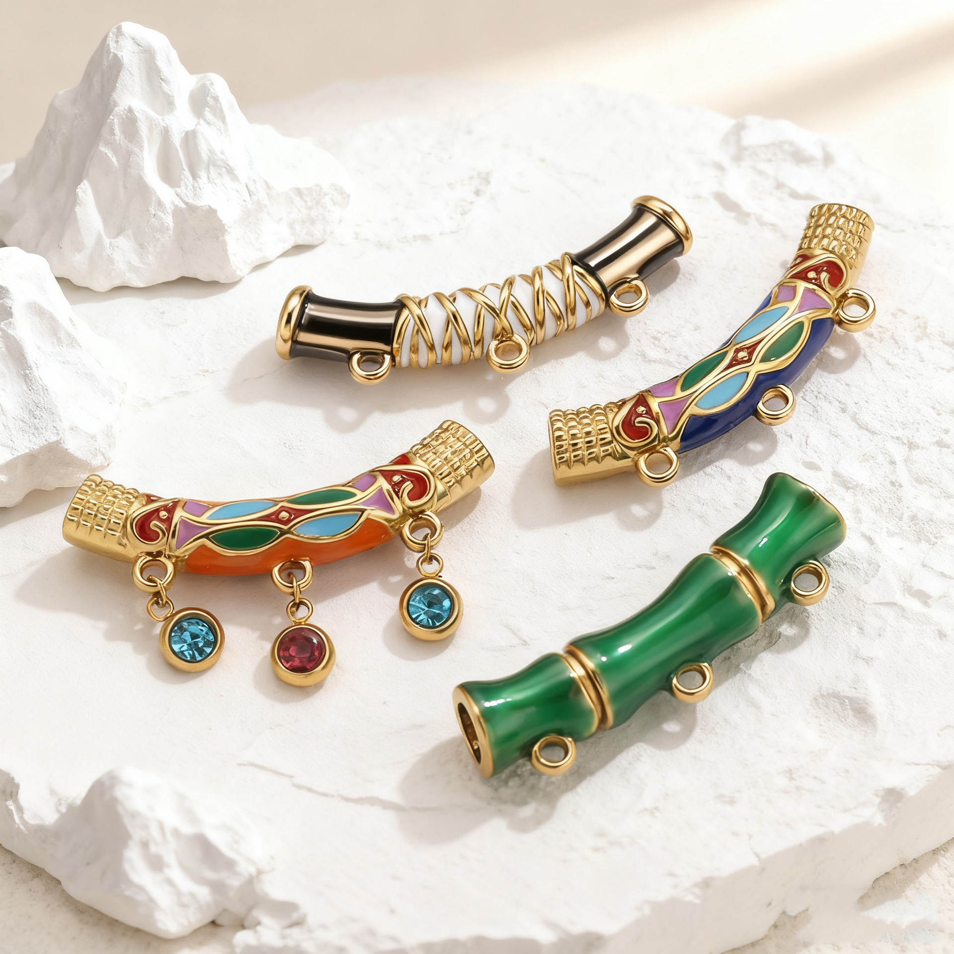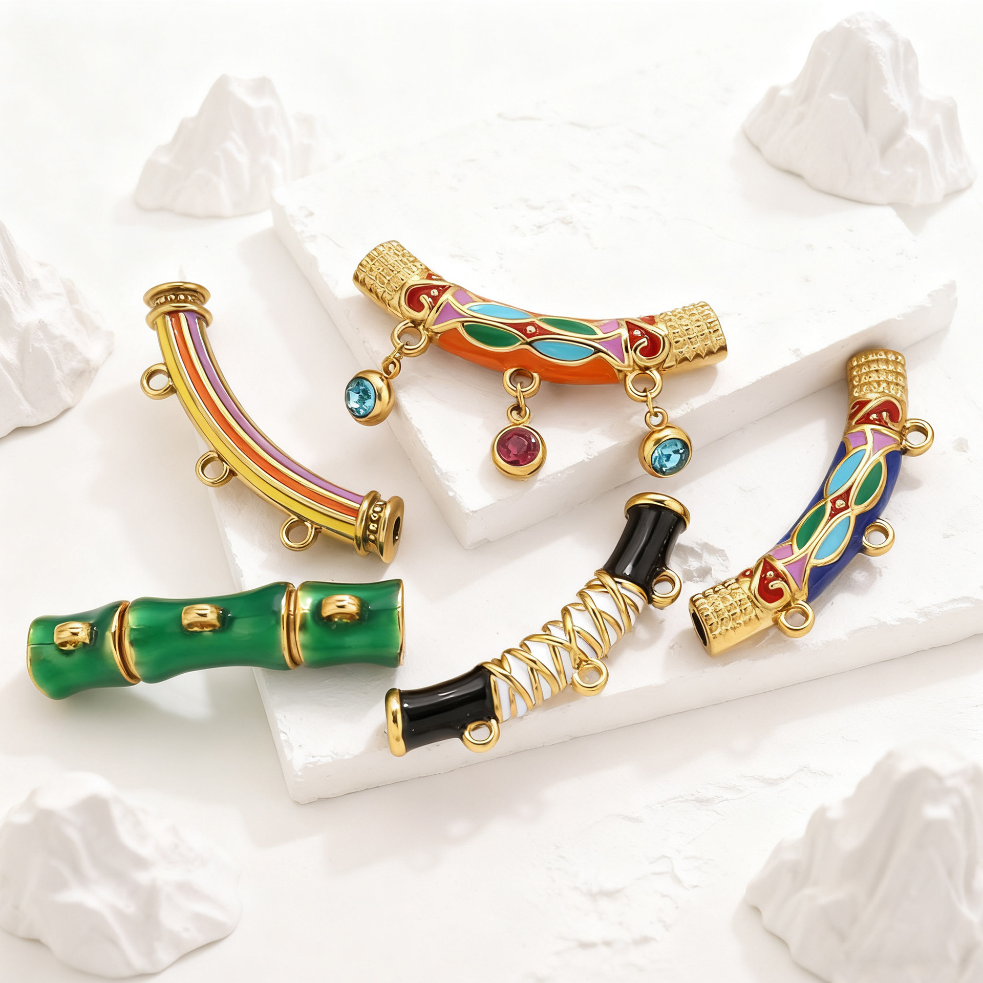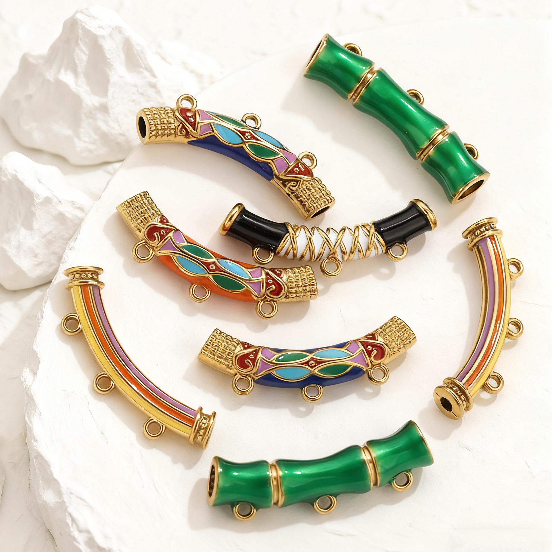 304 Stainless Steel Curved Tube Beads, gold color plated, DIY & enamel & with rhinestone, more colors for choice, Sold By PC