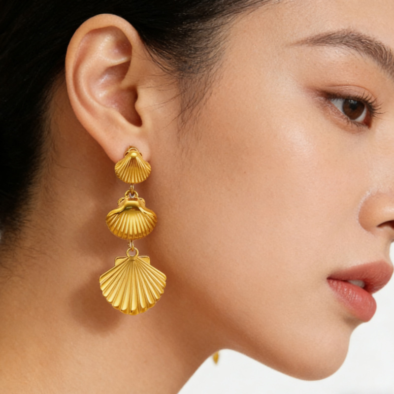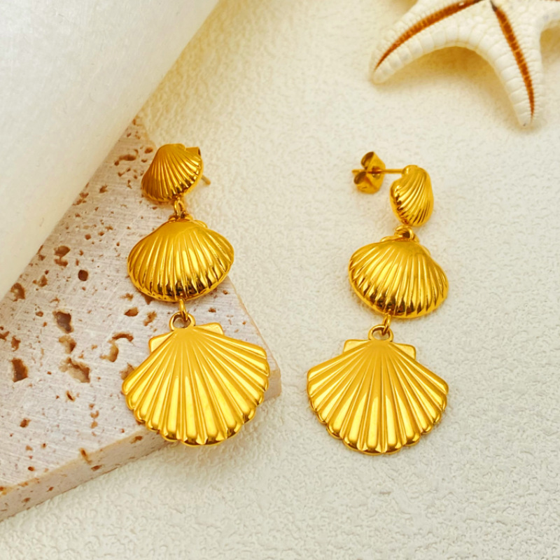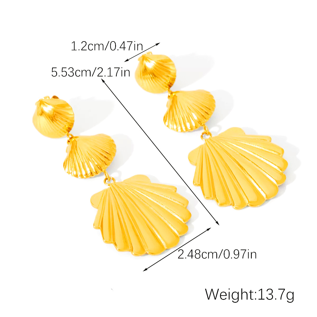 304 Stainless Steel Drop Earring, Shell, gold color plated, ocean design & for woman, 24.8x55.3mm, Sold By Pair