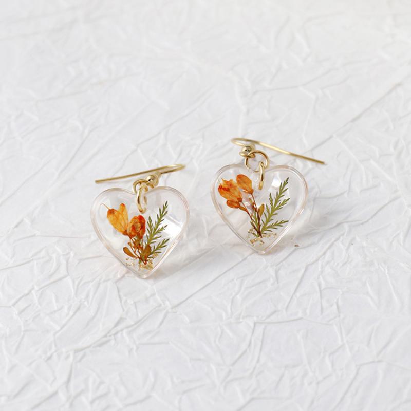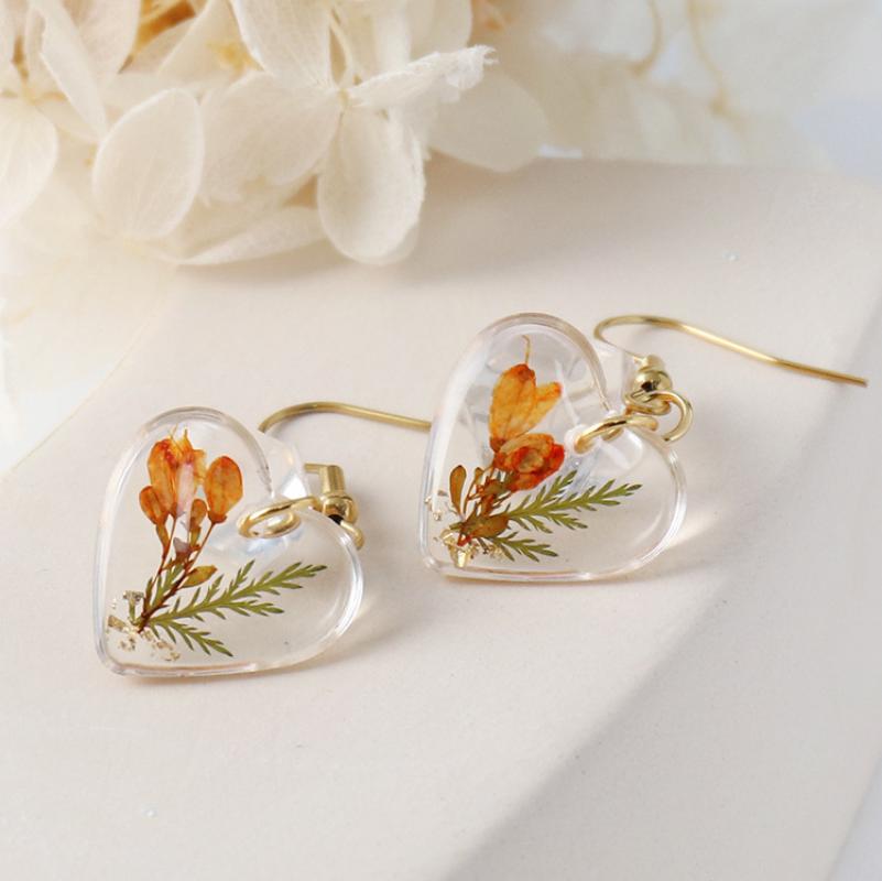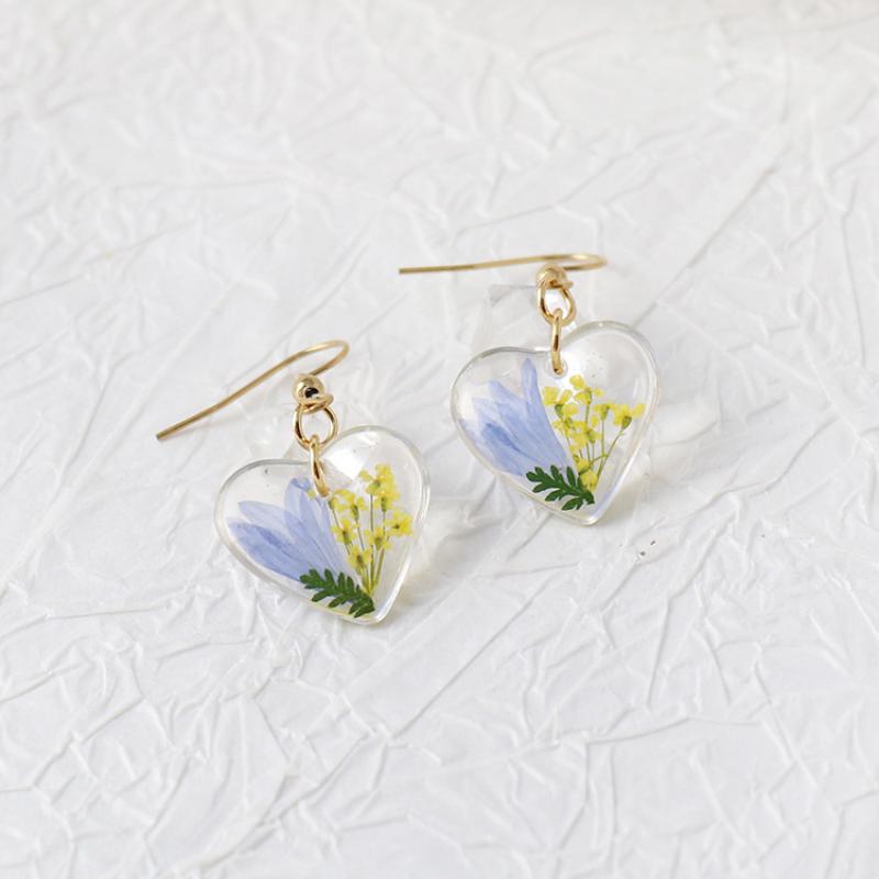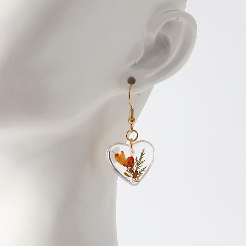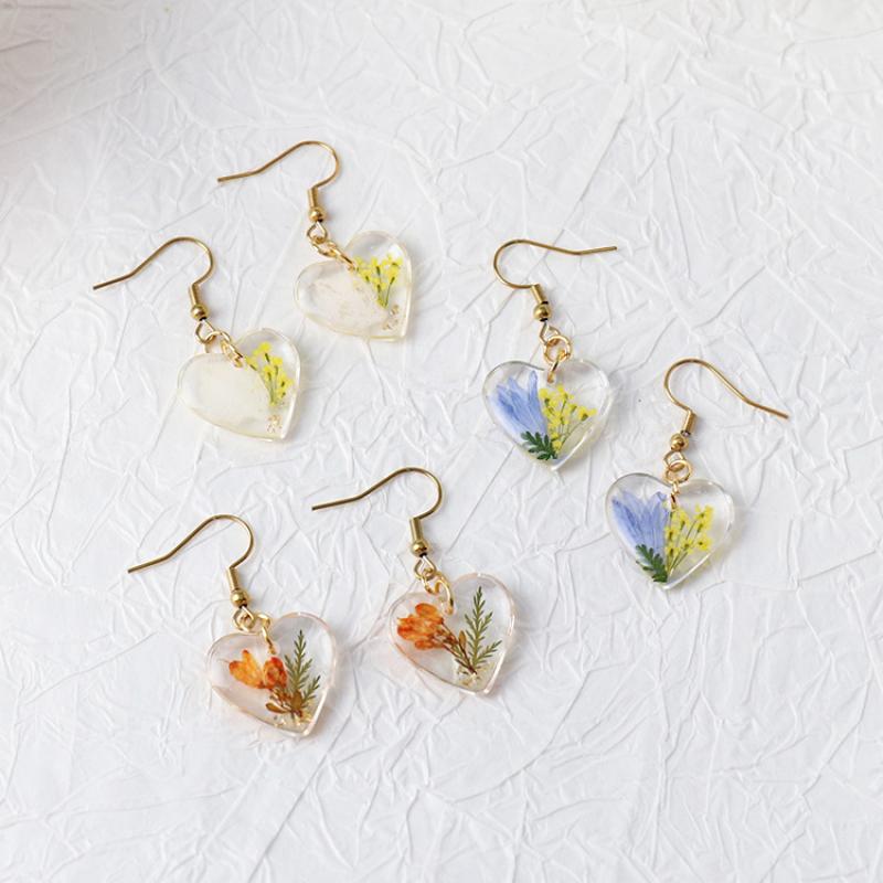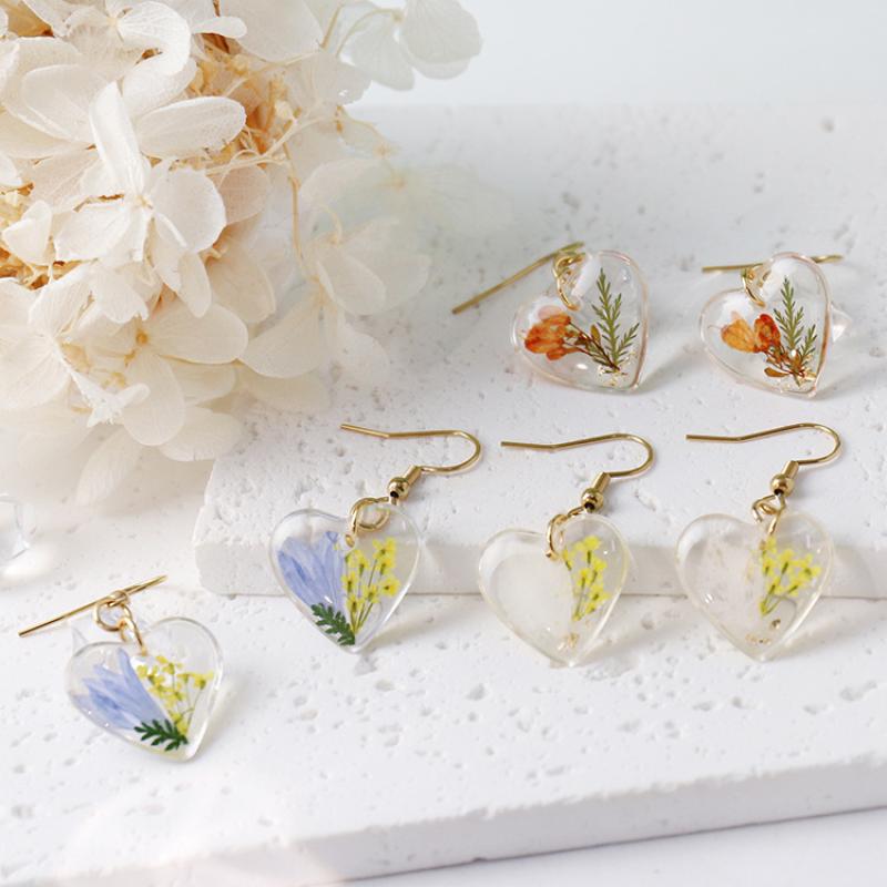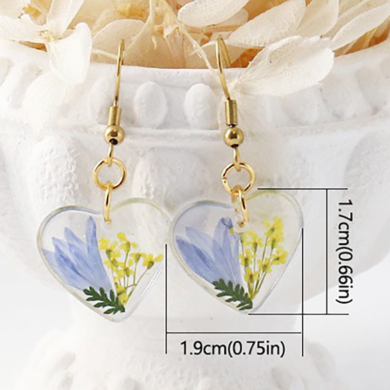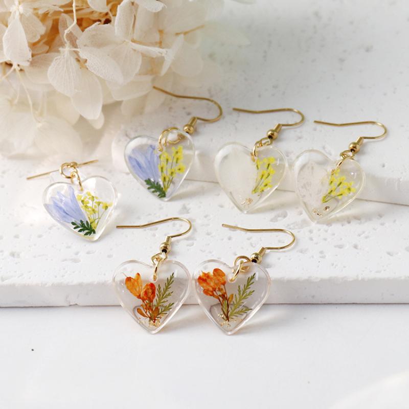 304 Stainless Steel Drop Earring, with Dried Flower & Resin, Heart, epoxy gel, fashion jewelry & different designs for choice & for woman, 6Pairs/Bag, Sold By Bag