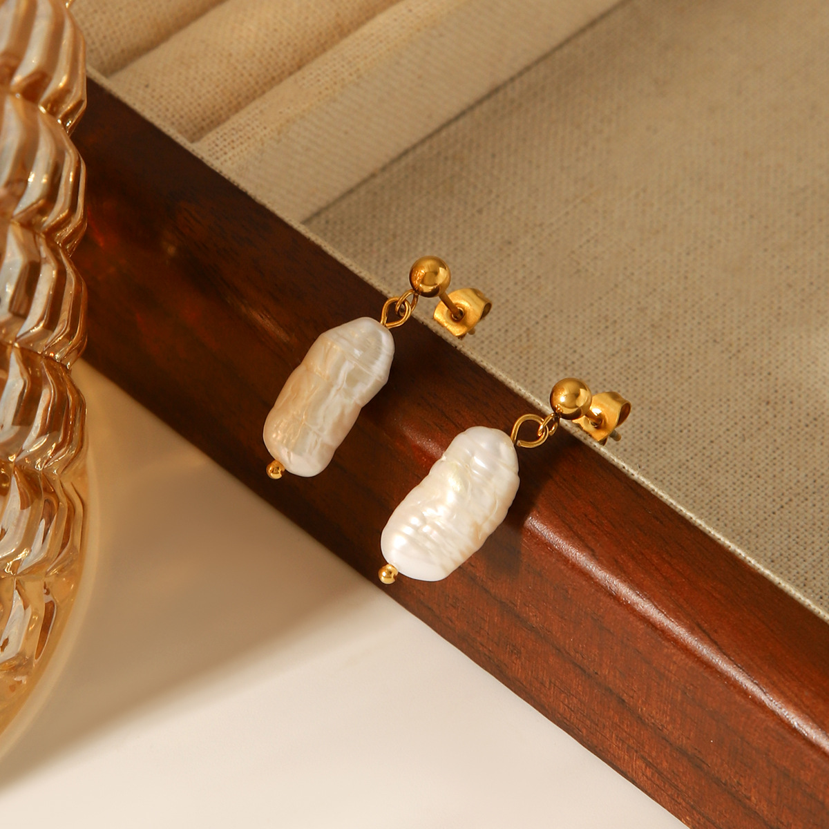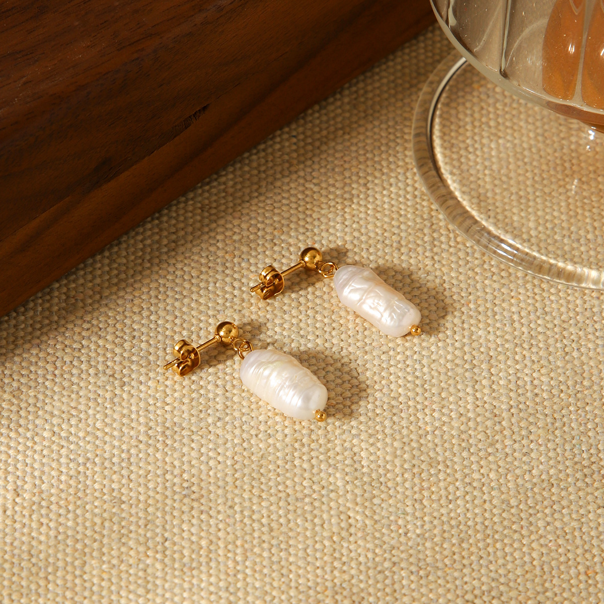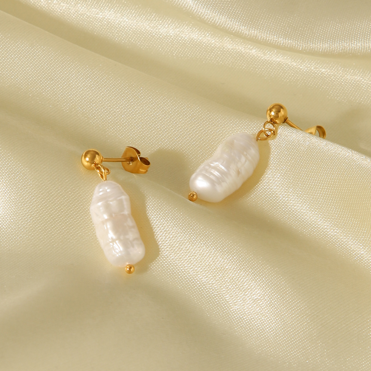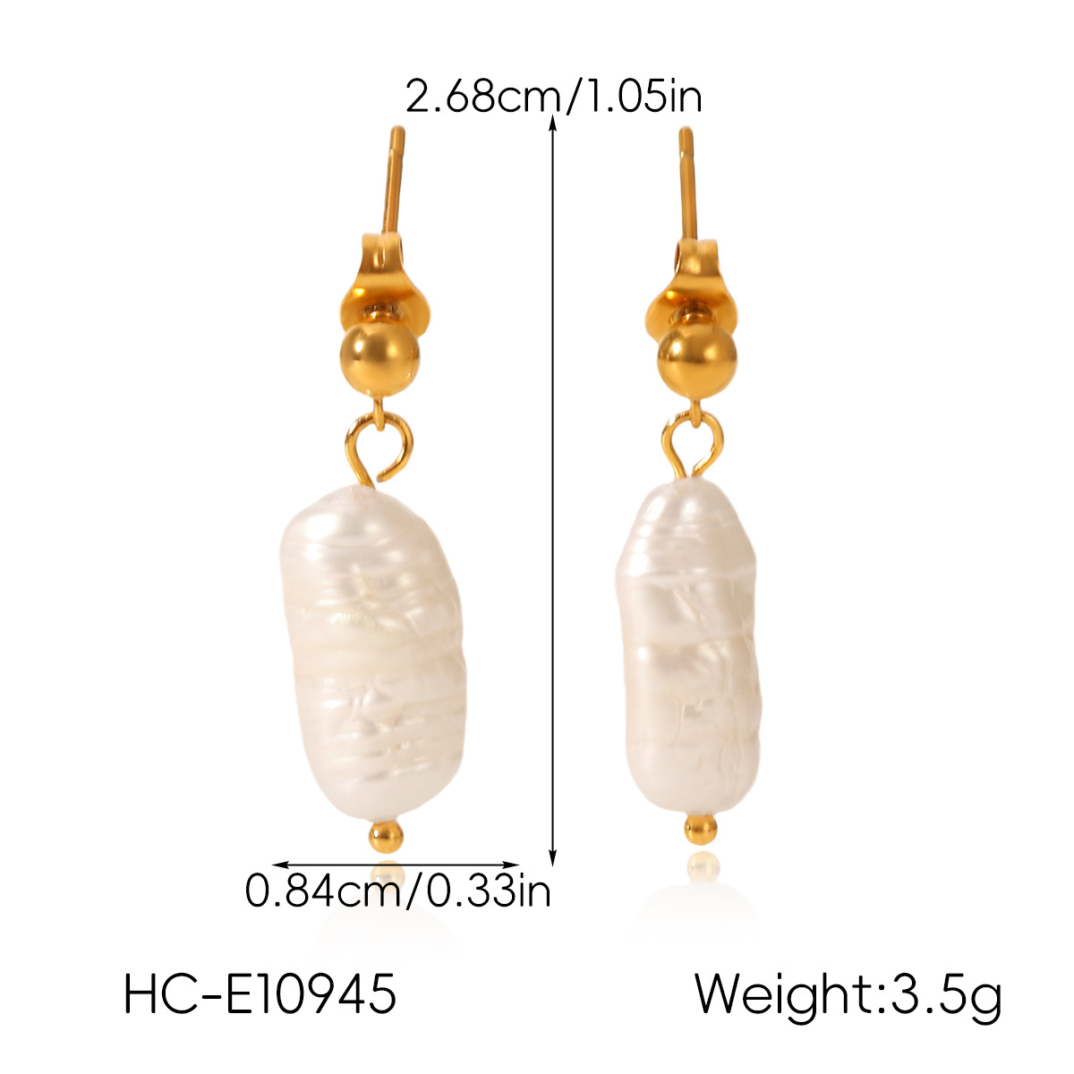 304 Stainless Steel Drop Earring, with Freshwater Pearl, gold color plated, fashion jewelry & for woman, Sold By Pair