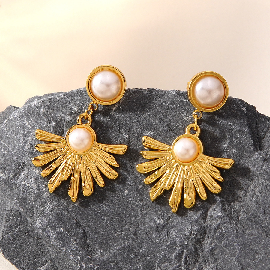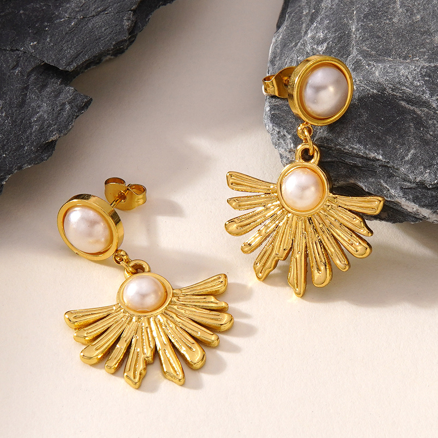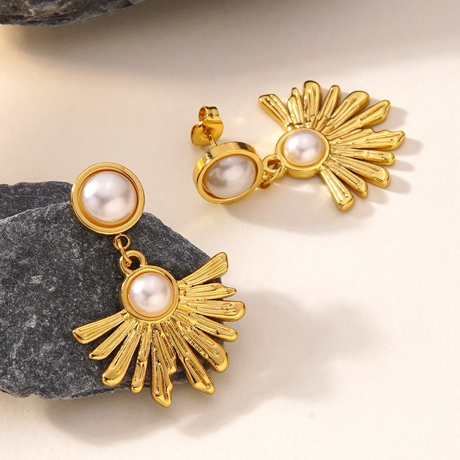 304 Stainless Steel Drop Earring, with Plastic Pearl, Flower, gold color plated, fashion jewelry & for woman, Sold By Pair