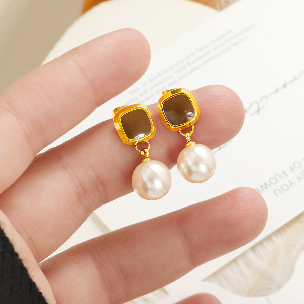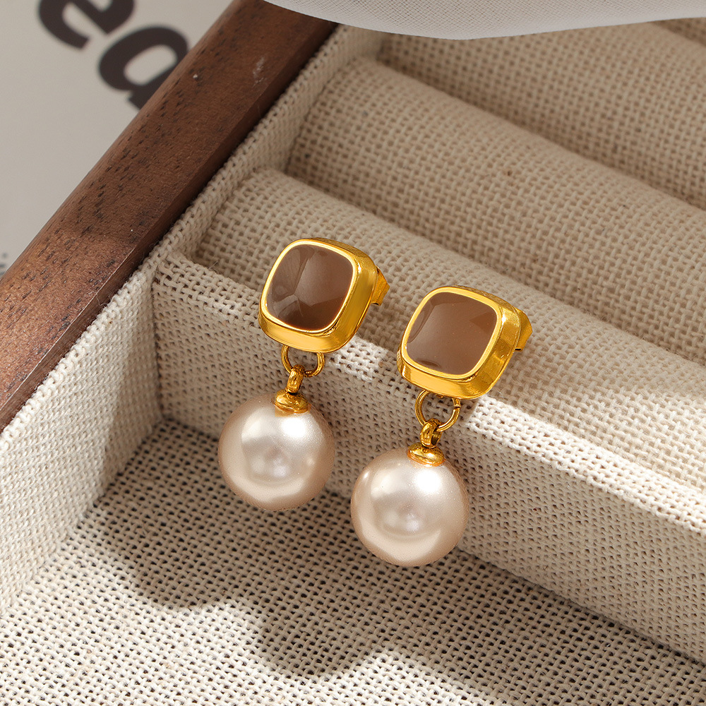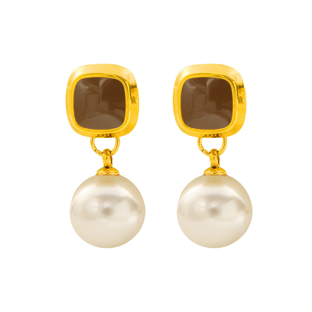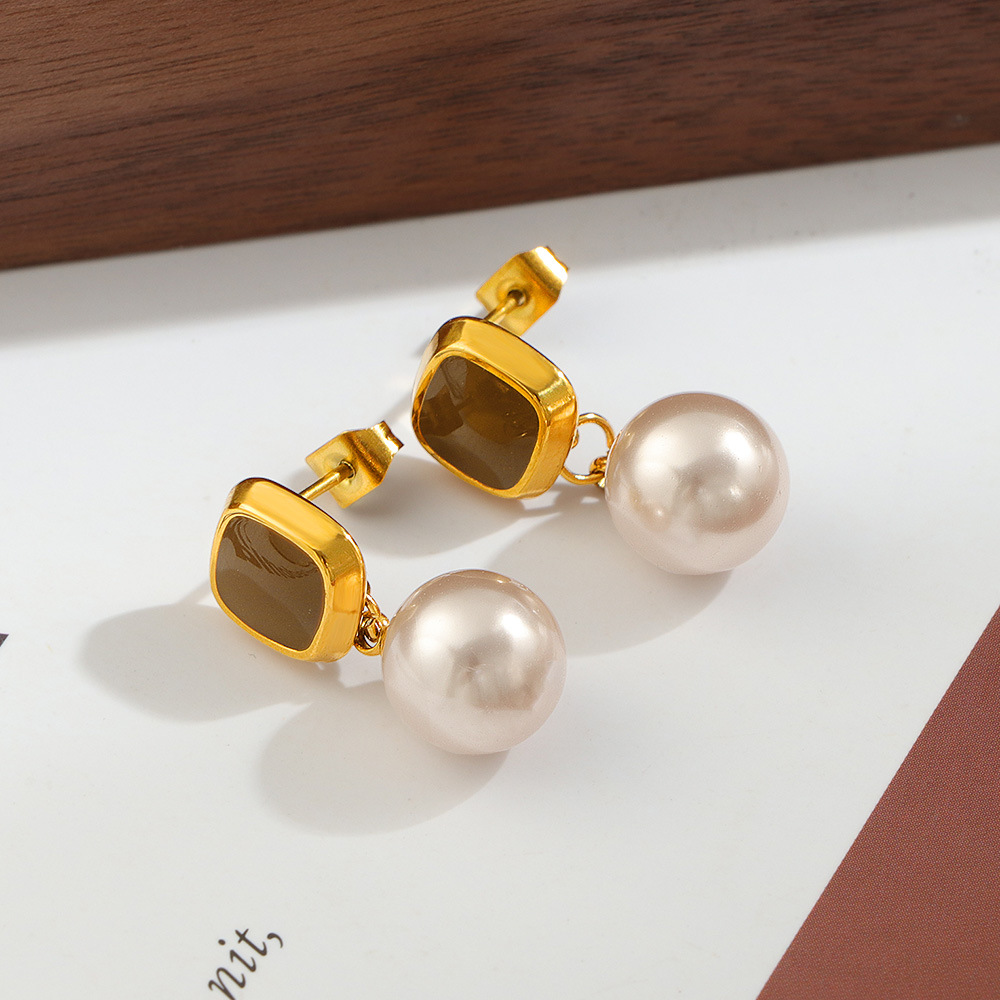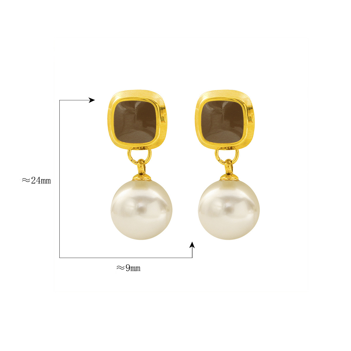 304 Stainless Steel Drop Earring, with Plastic Pearl, gold color plated, for woman & epoxy gel, 9x24mm, Sold By Pair