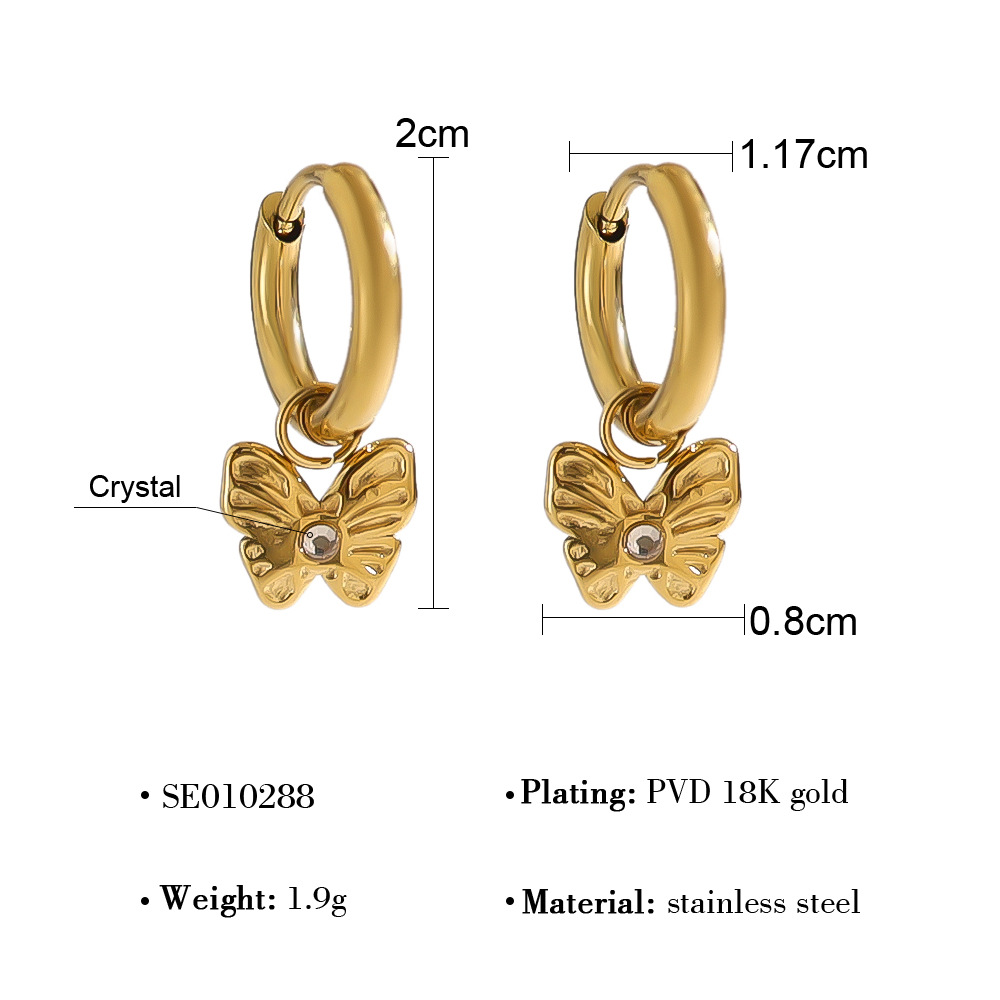 Stainless Steel Drop Earring, with rhinestone, original color  0.8mm