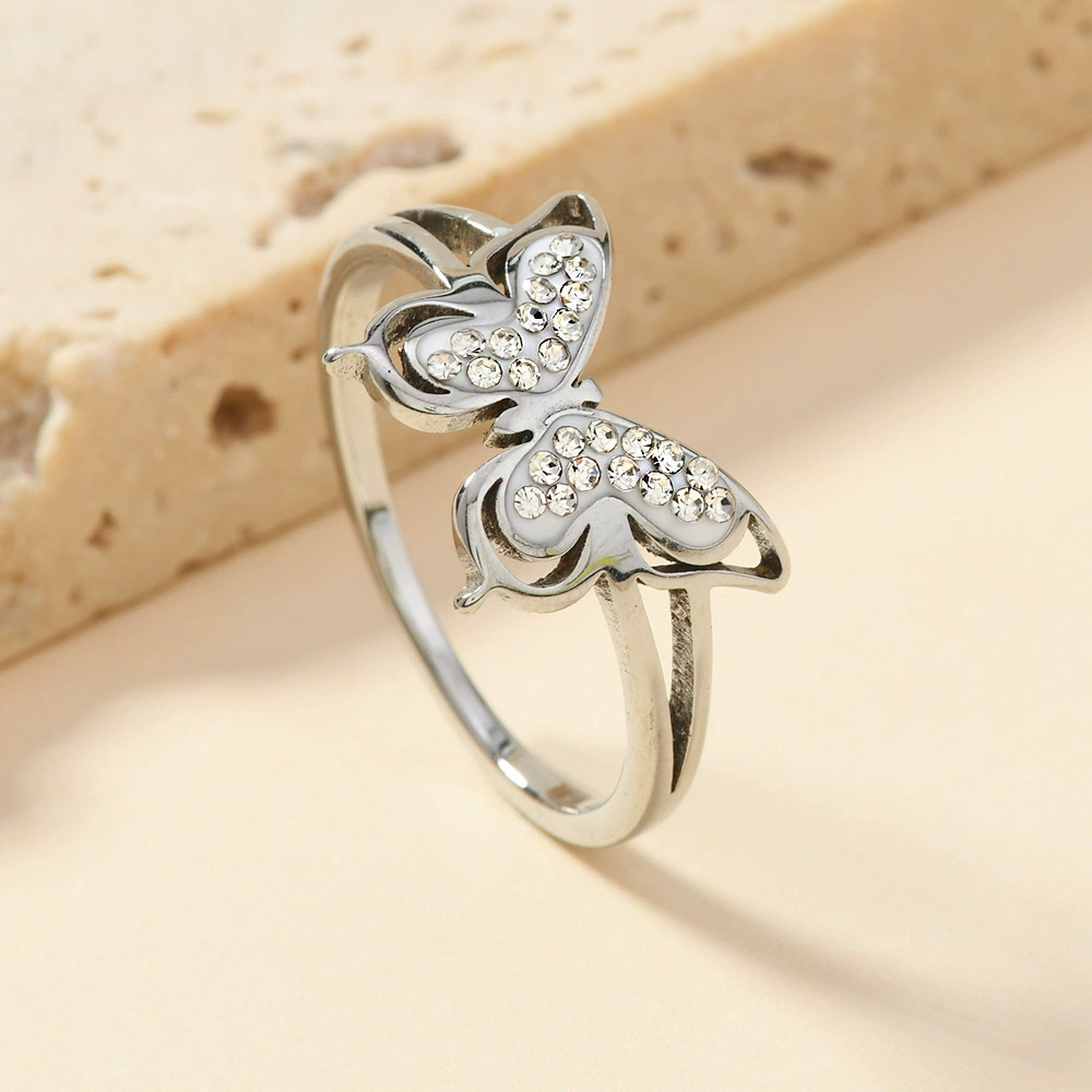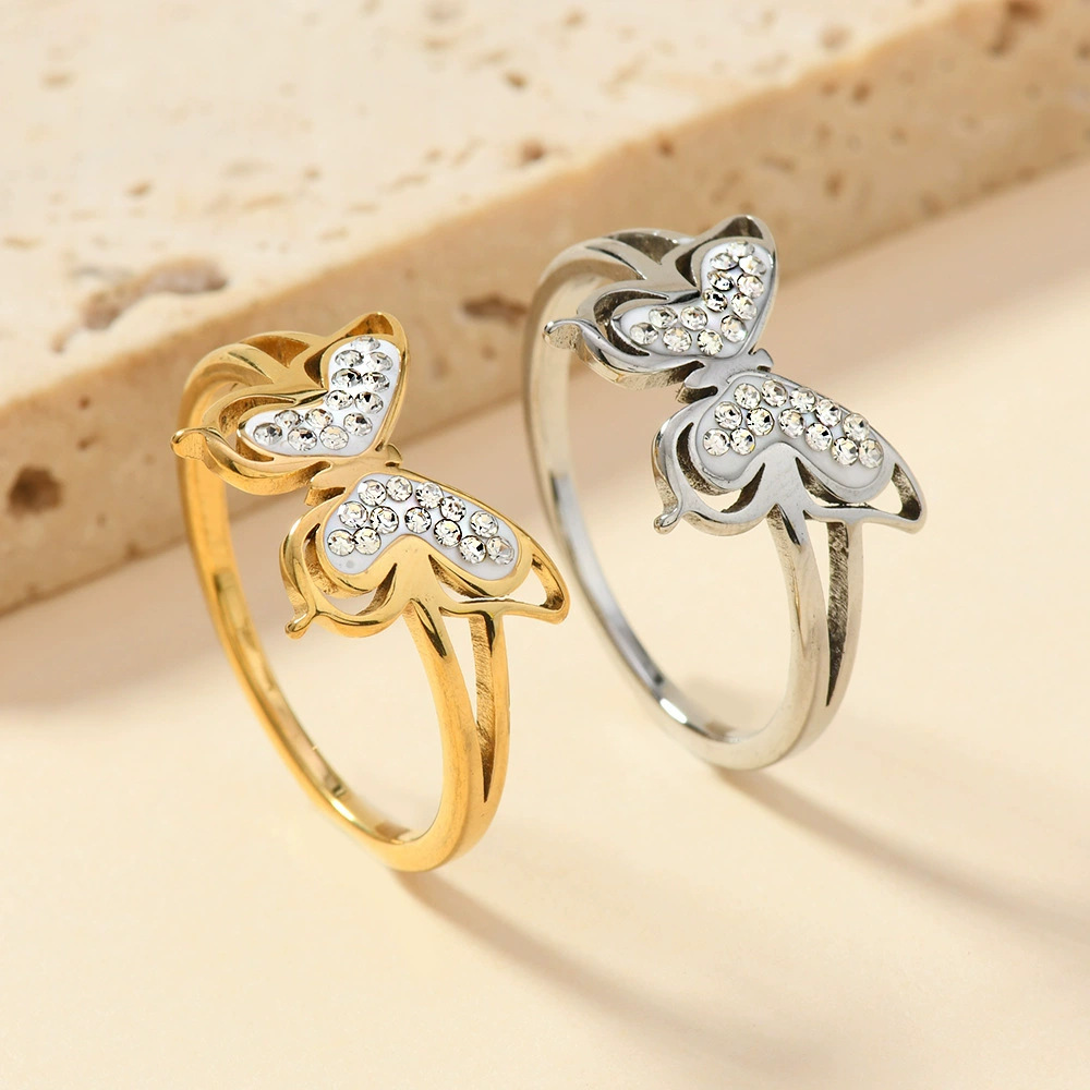 304 Stainless Steel Finger Ring, Butterfly, plated, different size for choice & for woman & with rhinestone, more colors for choice, US Ring Size:6-10, Sold By PC