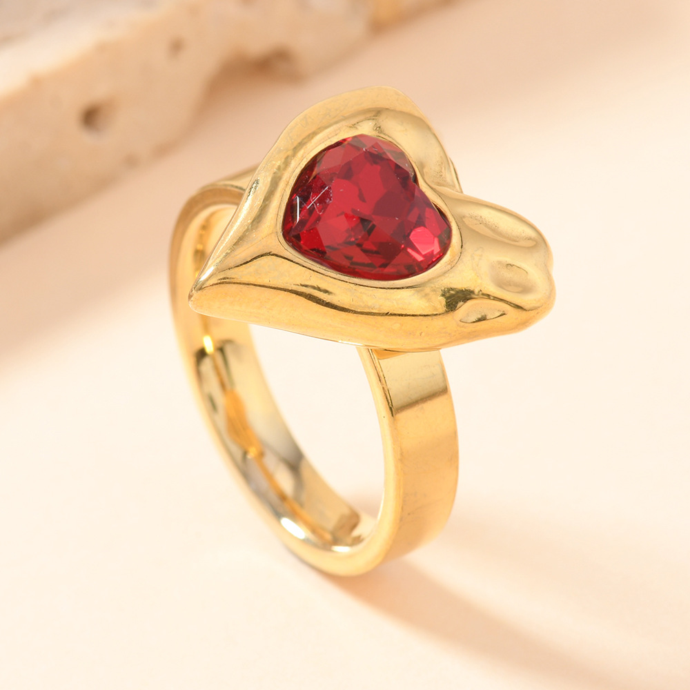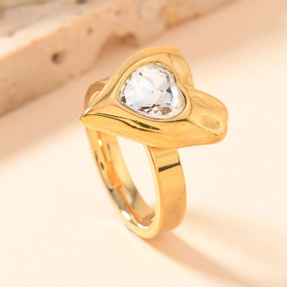 304 Stainless Steel Finger Ring, Heart, gold color plated, different size for choice & micro pave cubic zirconia & for woman, more colors for choice, US Ring Size:6-9, Sold By PC