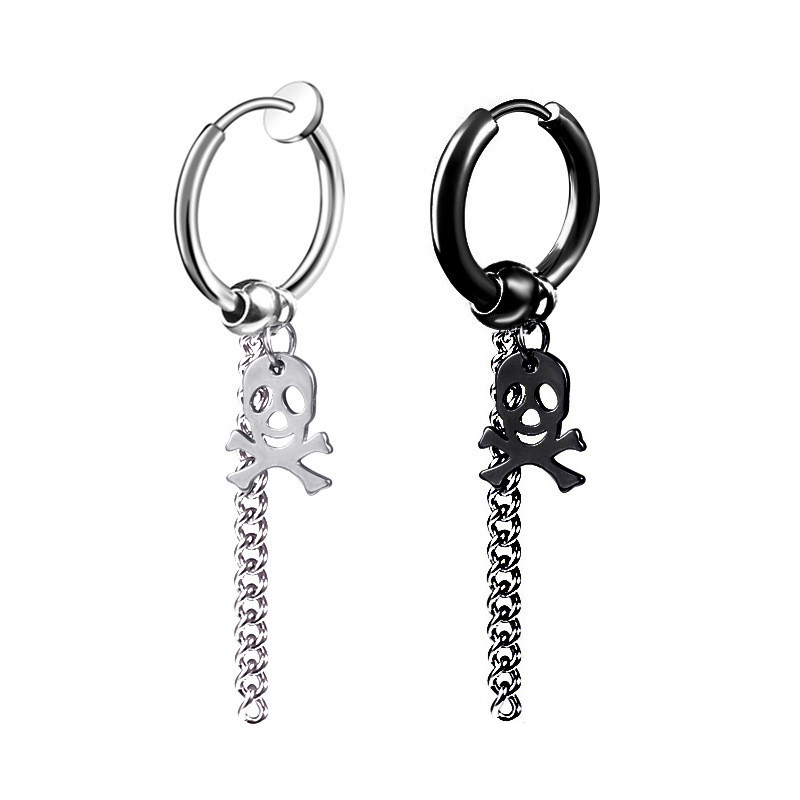 304 Stainless Steel Huggie Hoop Drop Earring, Skull, plated, Unisex & different styles for choice, 45mm, Sold By PC