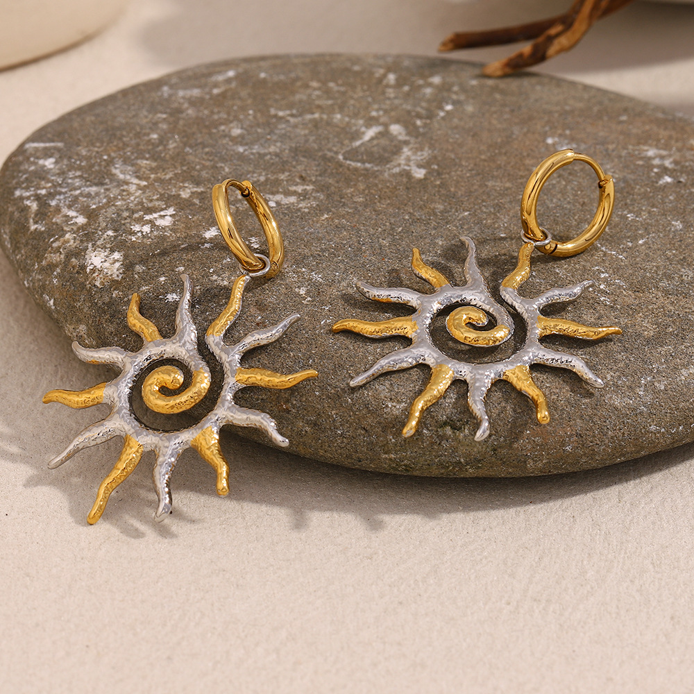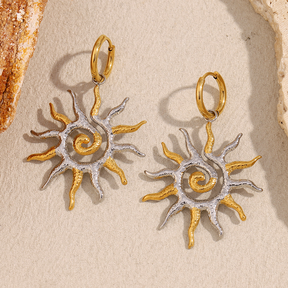 304 Stainless Steel Huggie Hoop Drop Earring, Sun, plated, fashion jewelry & for woman, 34x51.2mm, Sold By Pair