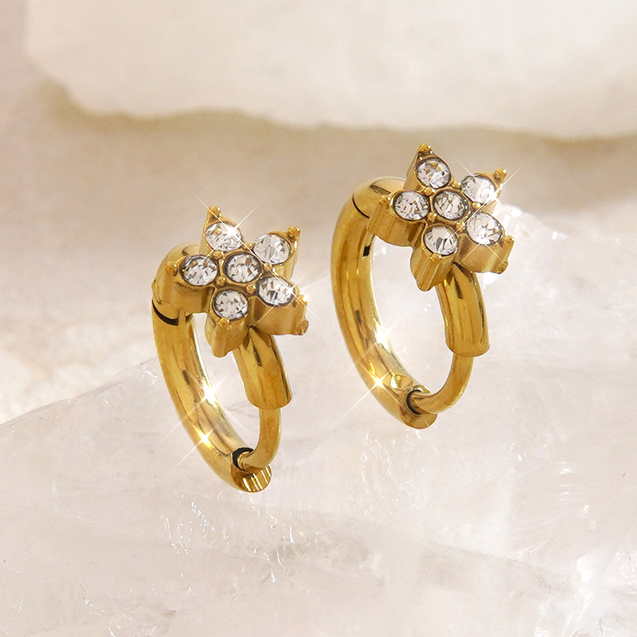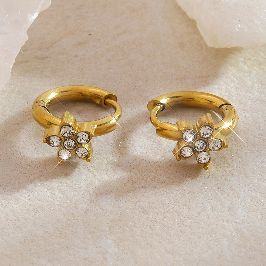304 Stainless Steel Huggie Hoop Earring, Flower, gold color plated, micro pave cubic zirconia & for woman, Sold By Pair