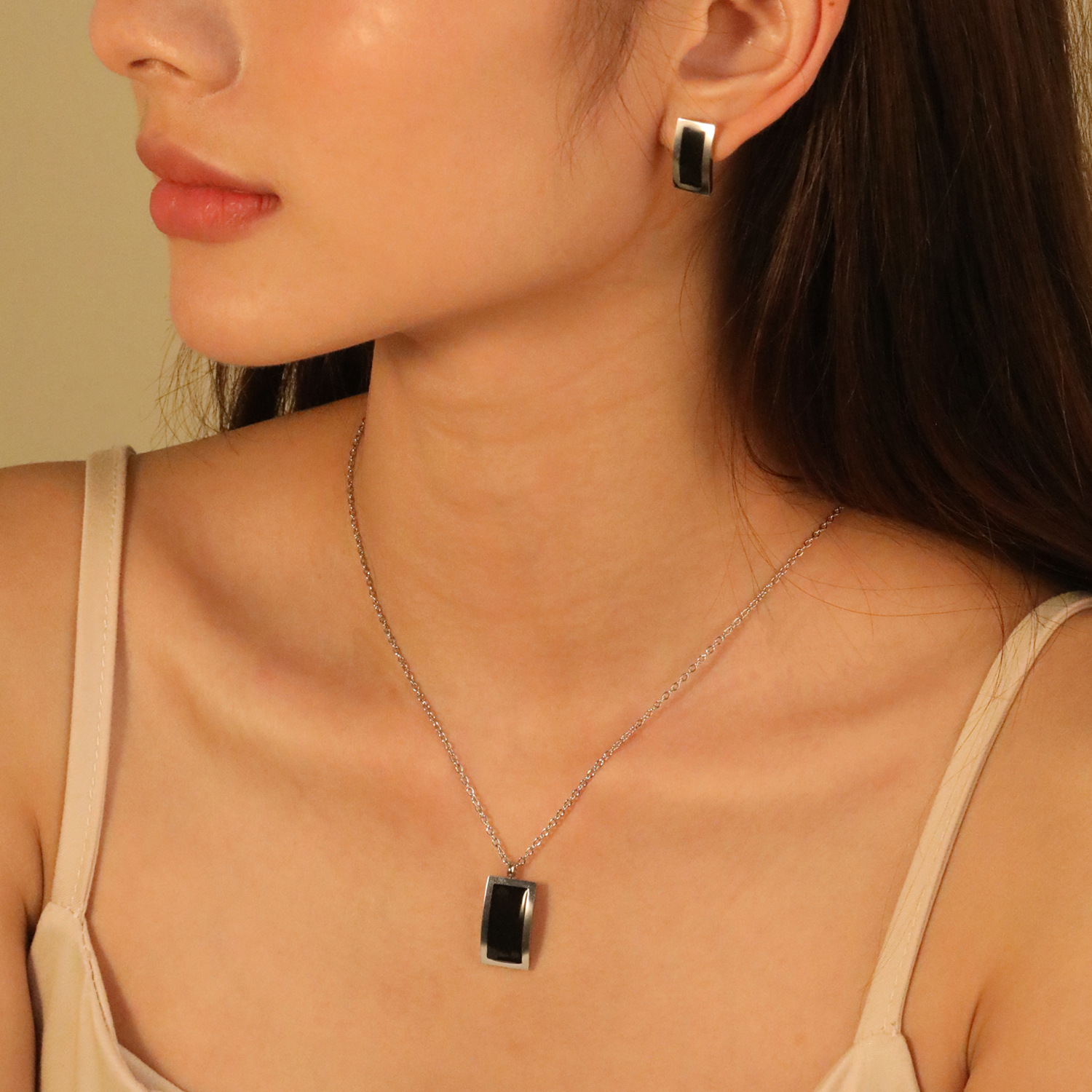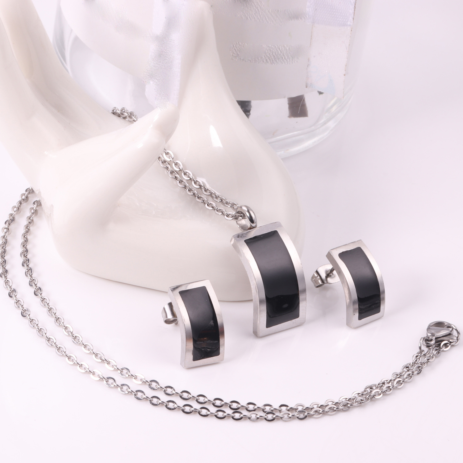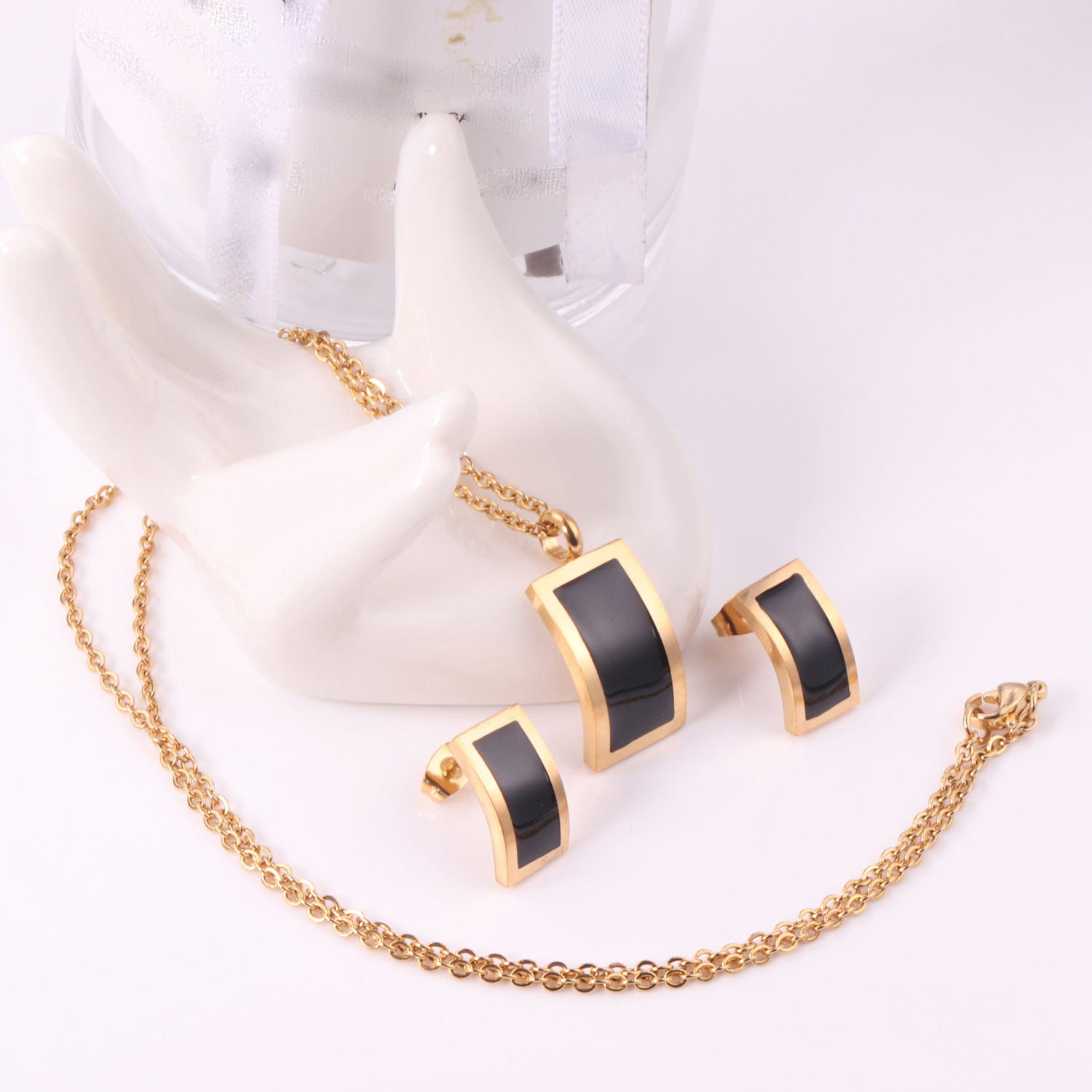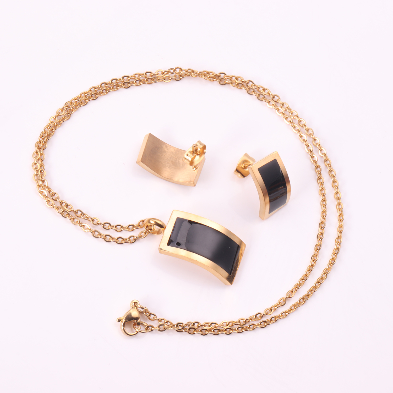 304 Stainless Steel Jewelry Set, Stud Earring & necklace, with Black Shell, Rectangle, plated, 2 pieces & fashion jewelry & for woman, more colors for choice, Sold By Set