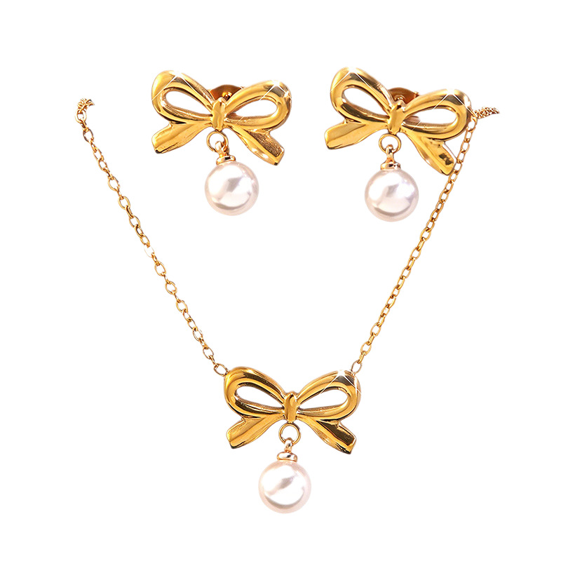 304 Stainless Steel Jewelry Set, with Plastic Pearl, Bowknot, gold color plated, different styles for choice, Sold By PC