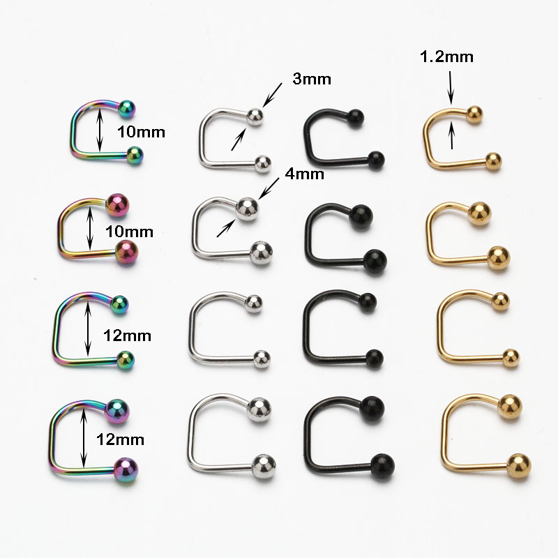 Stainless Steel Lip Ring, Unisex, mixed colors, 1.2*6/8/10*3mm