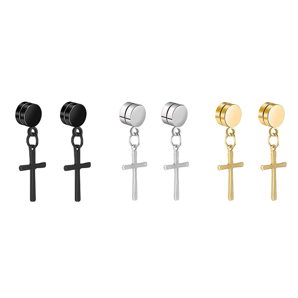304 Stainless Steel Magnetic Drop Earring, Cross, plated, fashion jewelry & Unisex, more colors for choice, Round size 8mm, Sold By PC