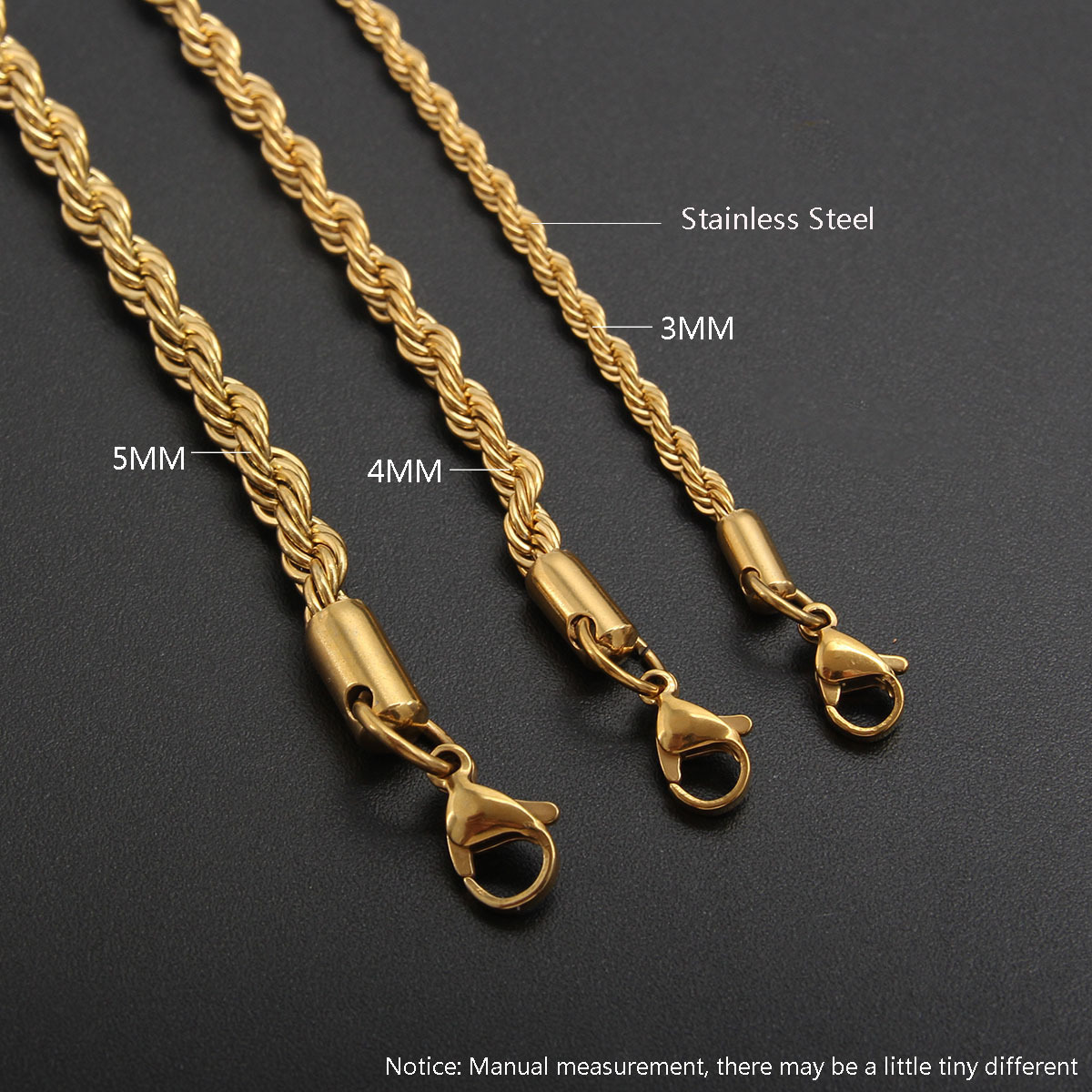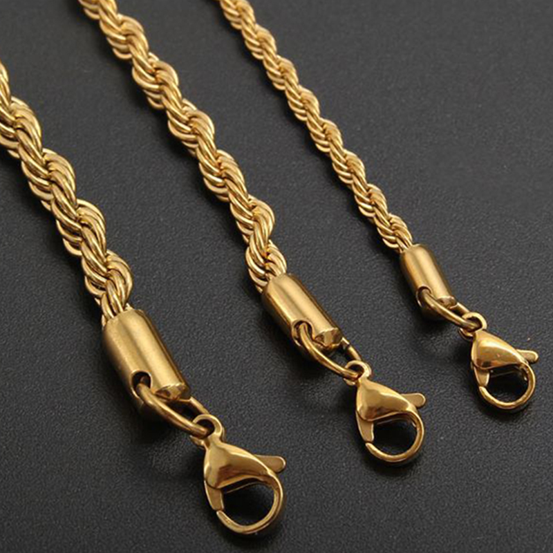 304 Stainless Steel Necklace, gold color plated, French Rope Chain & Unisex & different size for choice, Sold By PC