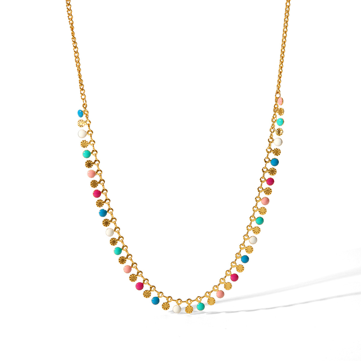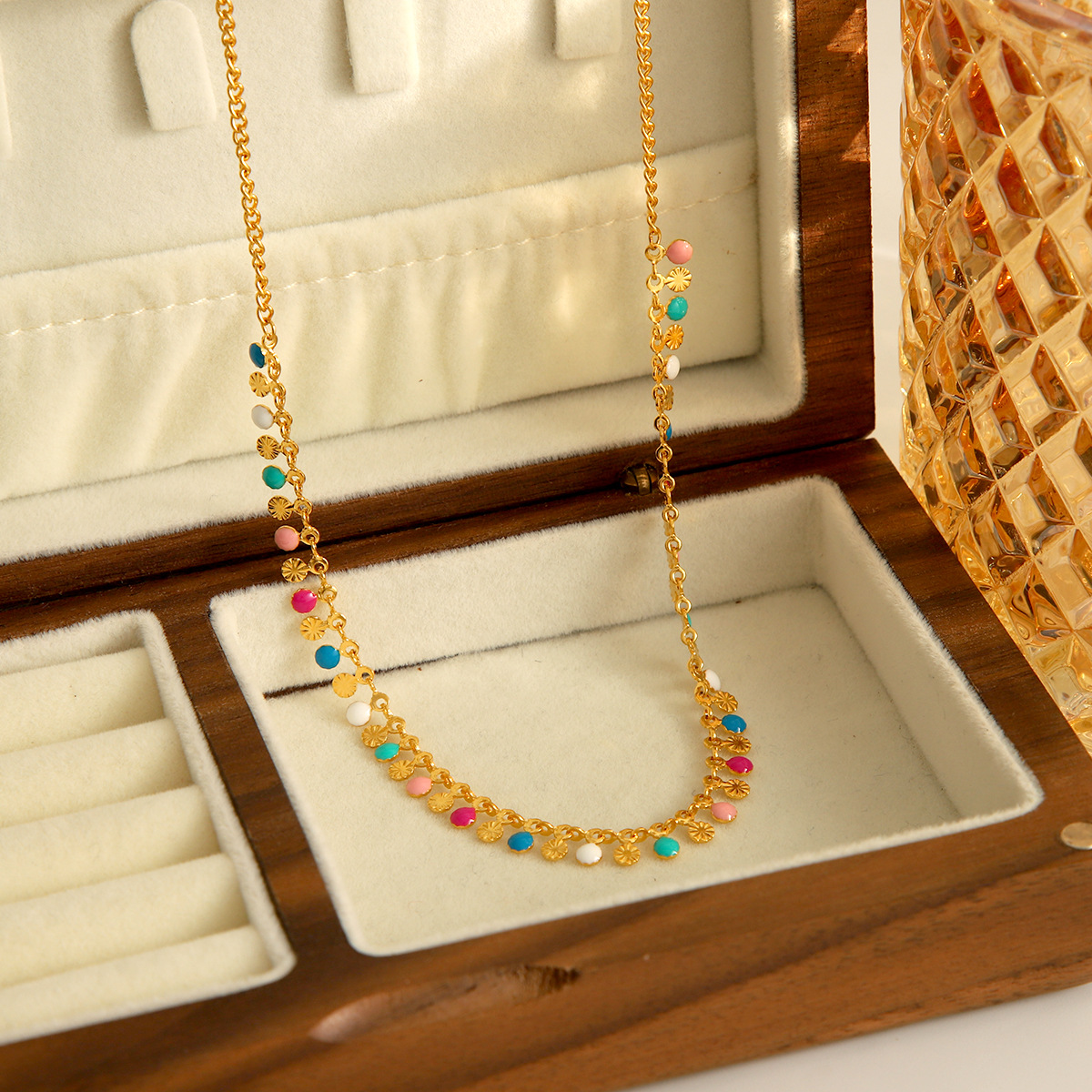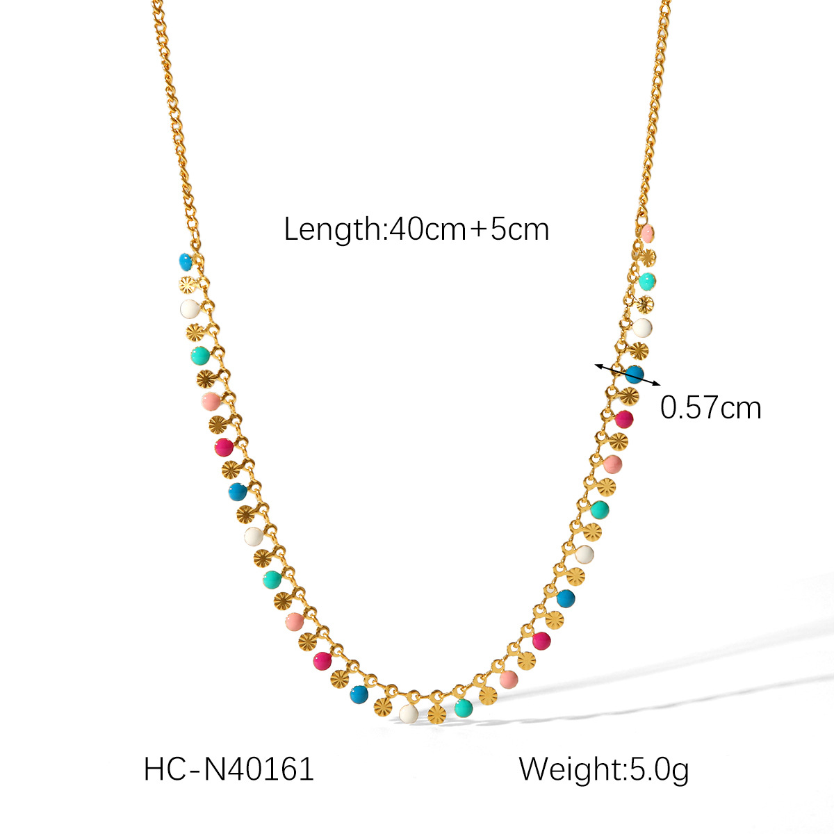 304 Stainless Steel Necklace, with 5cm extender chain, gold color plated, for woman & enamel, Length:Approx 40 cm, Sold By PC