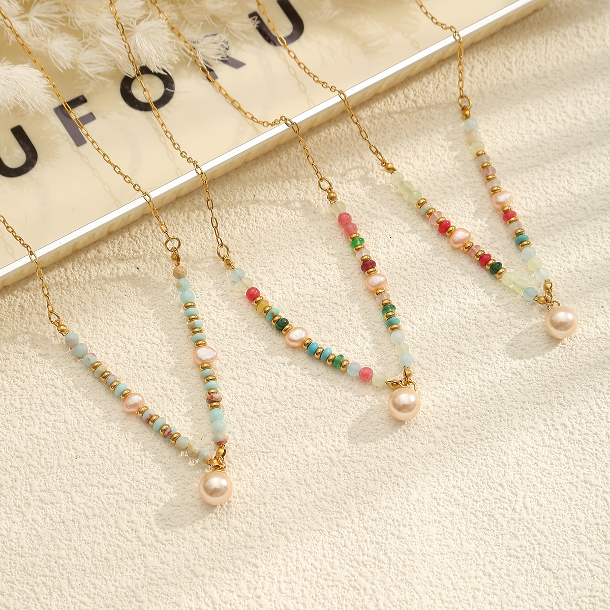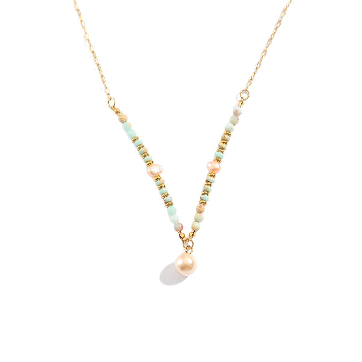 304 Stainless Steel Necklace, with Glass & Plastic Pearl, with 5cm extender chain, gold color plated, fashion jewelry & for woman, more colors for choice, Length:Approx 45 cm, Sold By PC