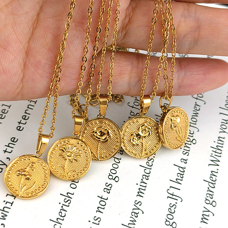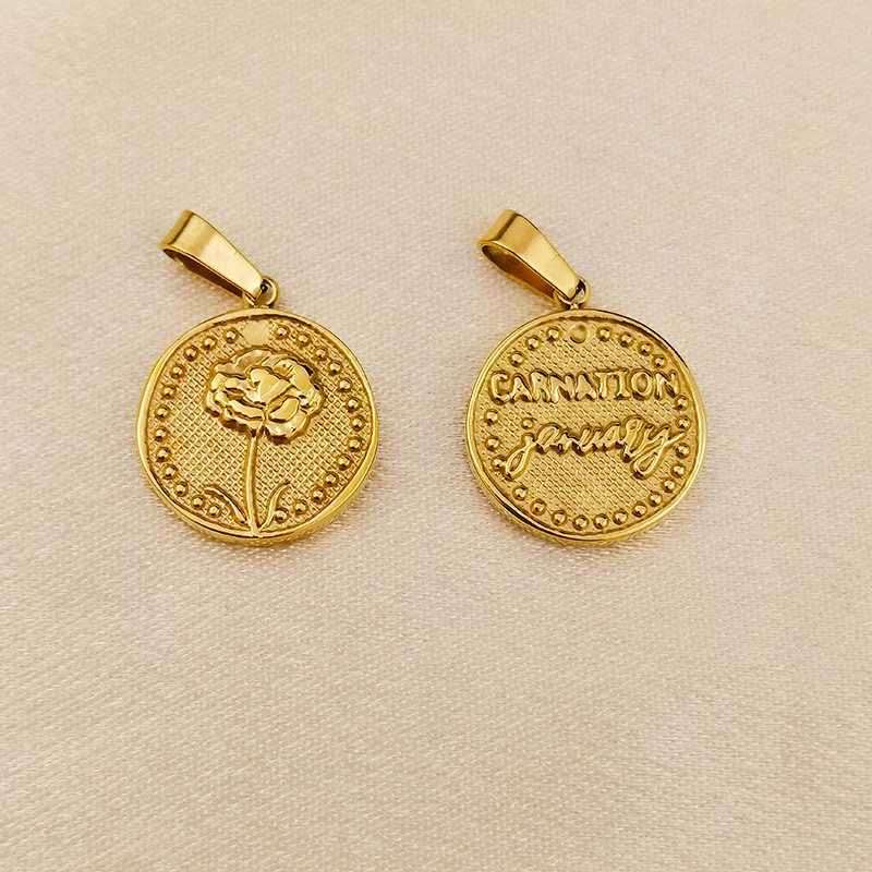 304 Stainless Steel Pendant, Flat Round, gold color plated, DIY & different styles for choice & with flower pattern, 15mm, Sold By PC