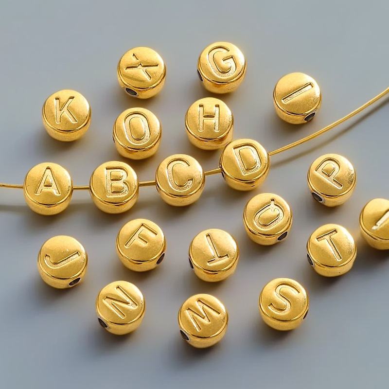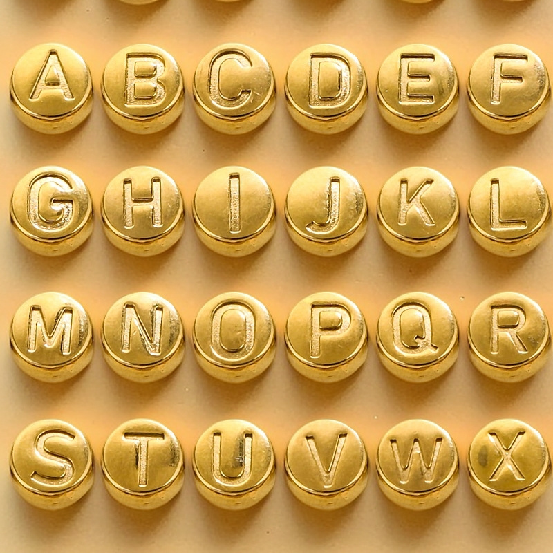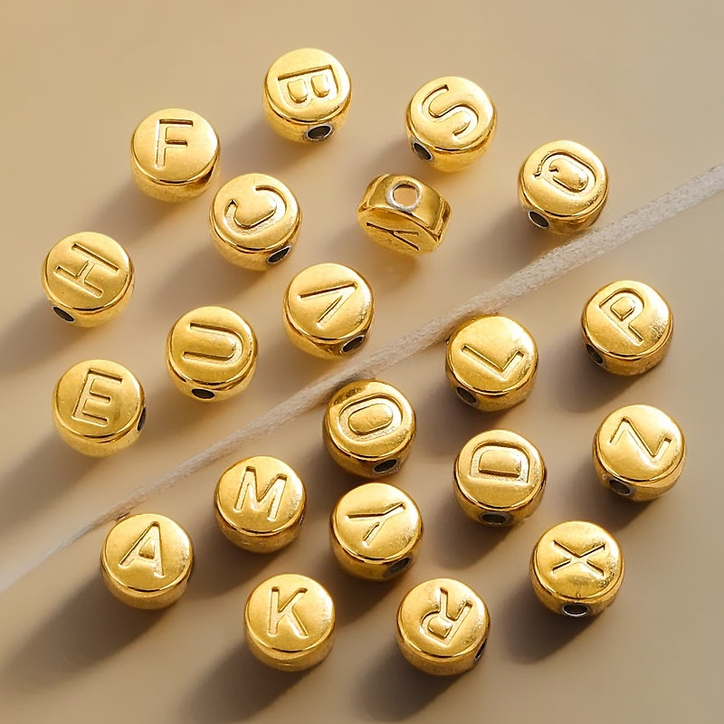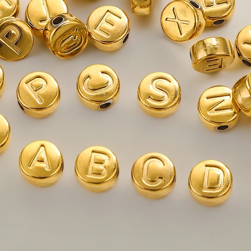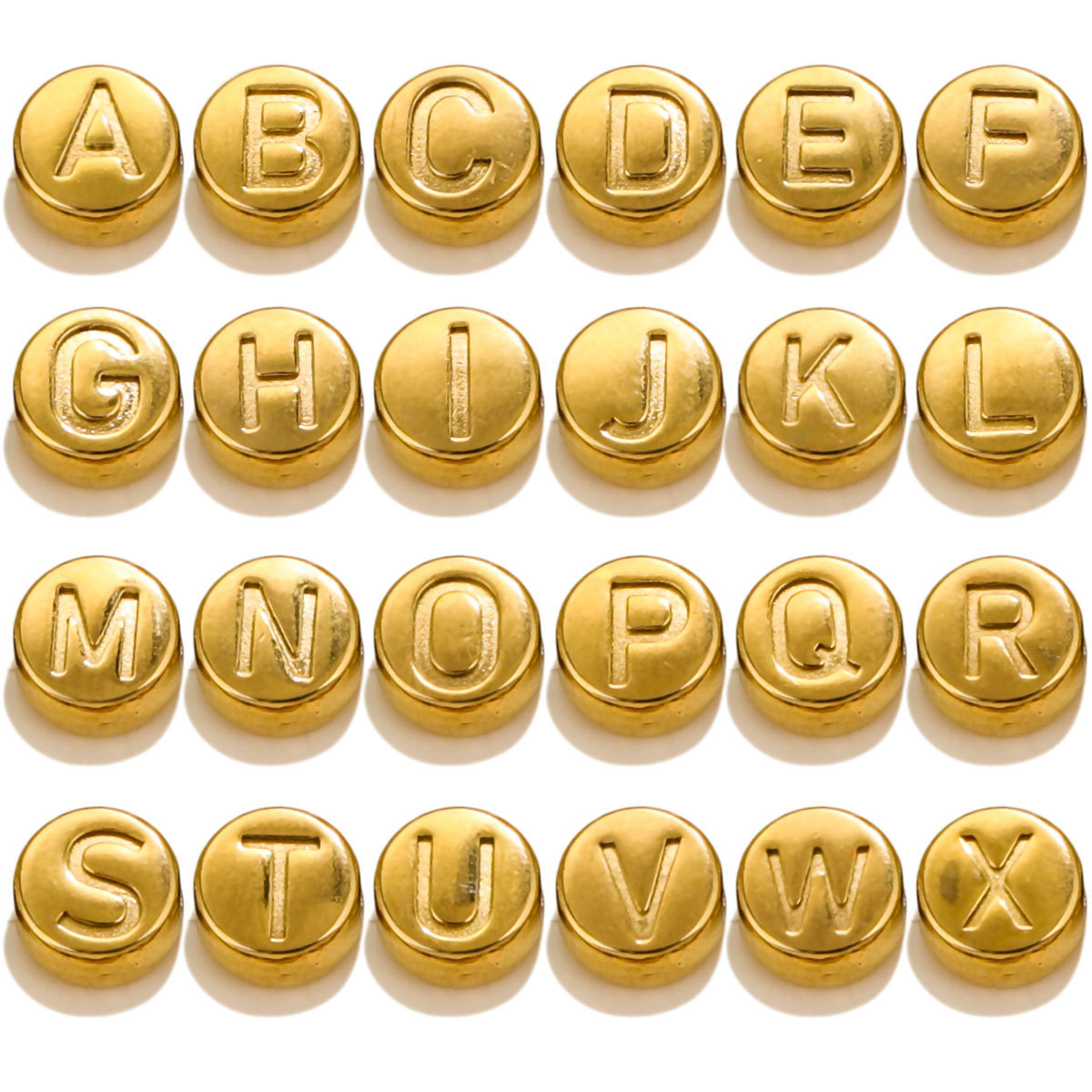 Stainless Steel Beads, 304 Stainless Steel, Flat Round, Vacuum Ion Plating, letters are from A to Z & DIY, more colors for choice, 7mm, Hole:Approx 1mm, 10PCs/Bag, Sold By Bag