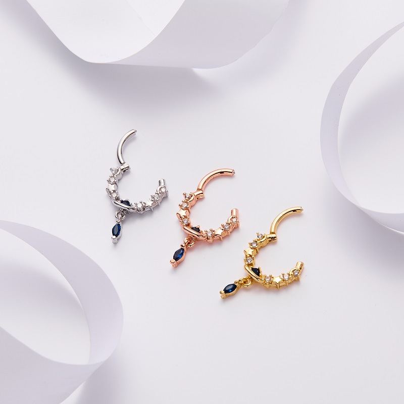 Stainless Steel Nose Piercing Jewelry, plated, for woman & with rhinestone