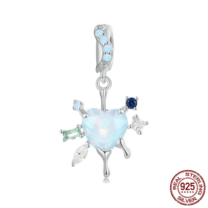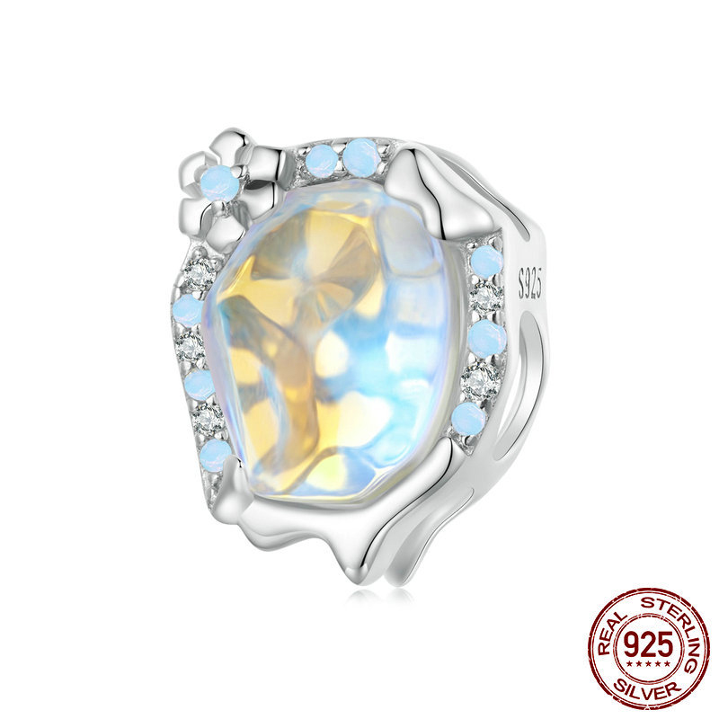 925 Sterling Silver Beads, with Moonstone & Opal & Glass, platinum plated, DIY & different styles for choice & micro pave cubic zirconia & enamel, beads length 10-25mm, Hole:Approx 4.5mm, Sold By PC